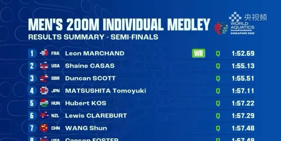 昨晚进行的新加坡游泳世锦赛男子200米个人混合泳半决赛,法国的奥运四金王冠军马尔