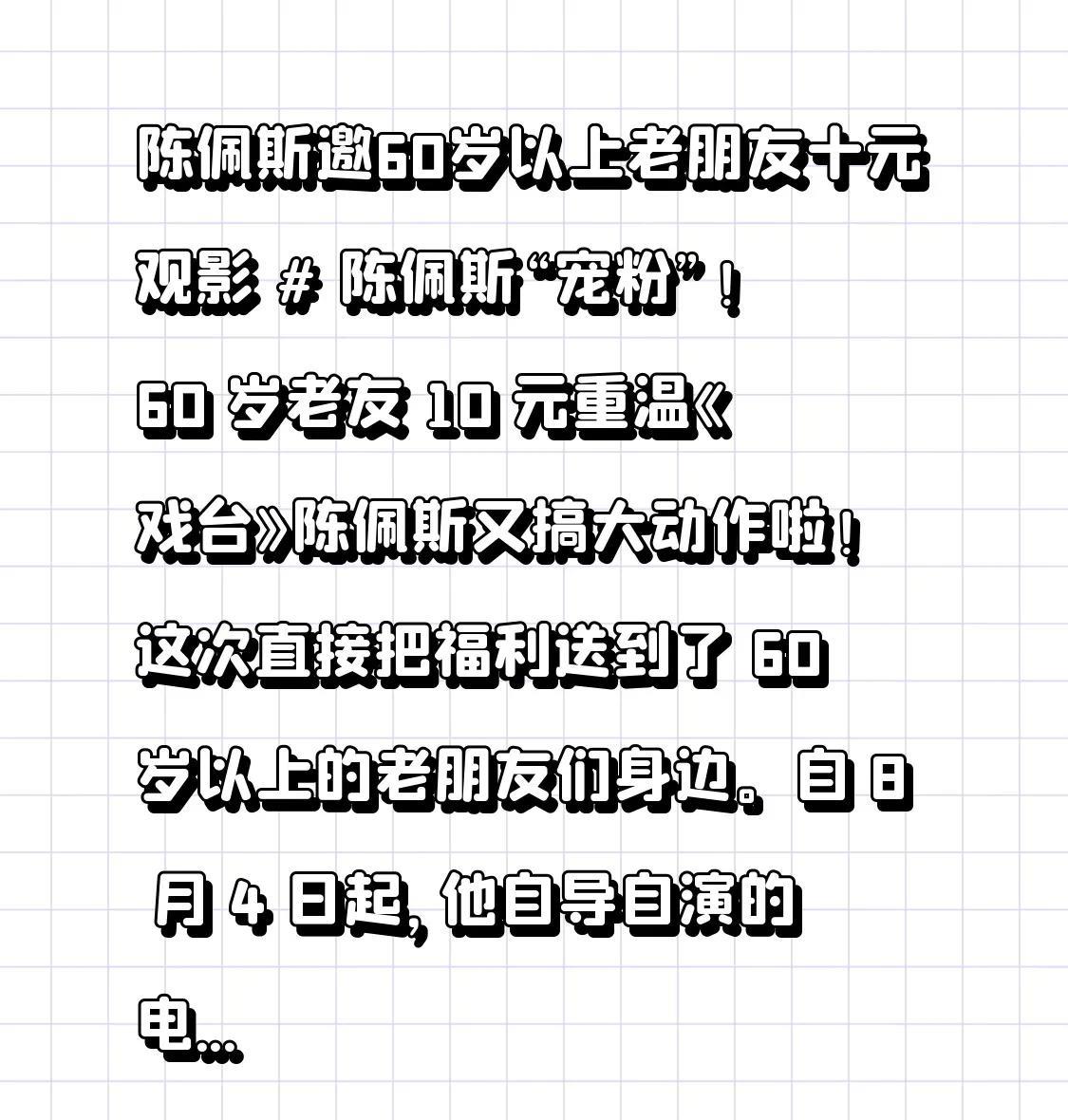 陈佩斯邀60岁以上老朋友十元观影陈佩斯可有大动作啦,他要邀请60岁以上的老朋友