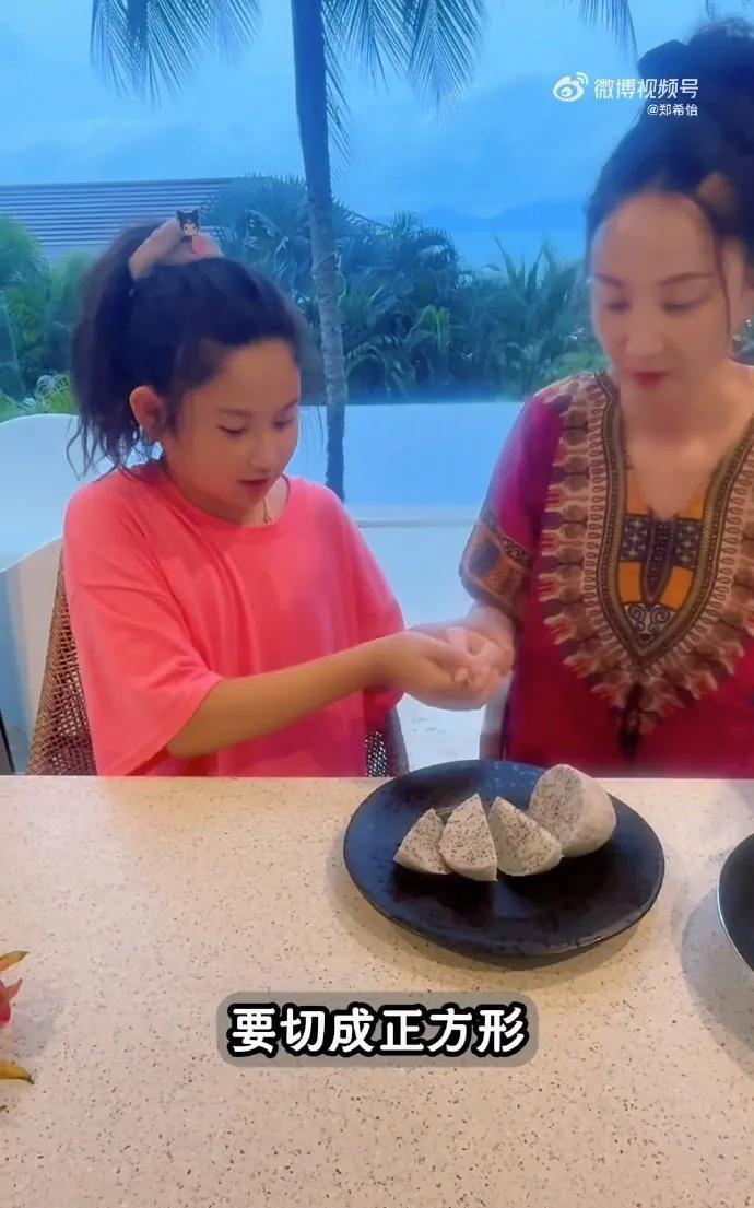 被郑希怡和女儿做糯米糍的视频甜晕!浸浸才10岁,眉眼间就和妈妈像复刻粘贴,干活时