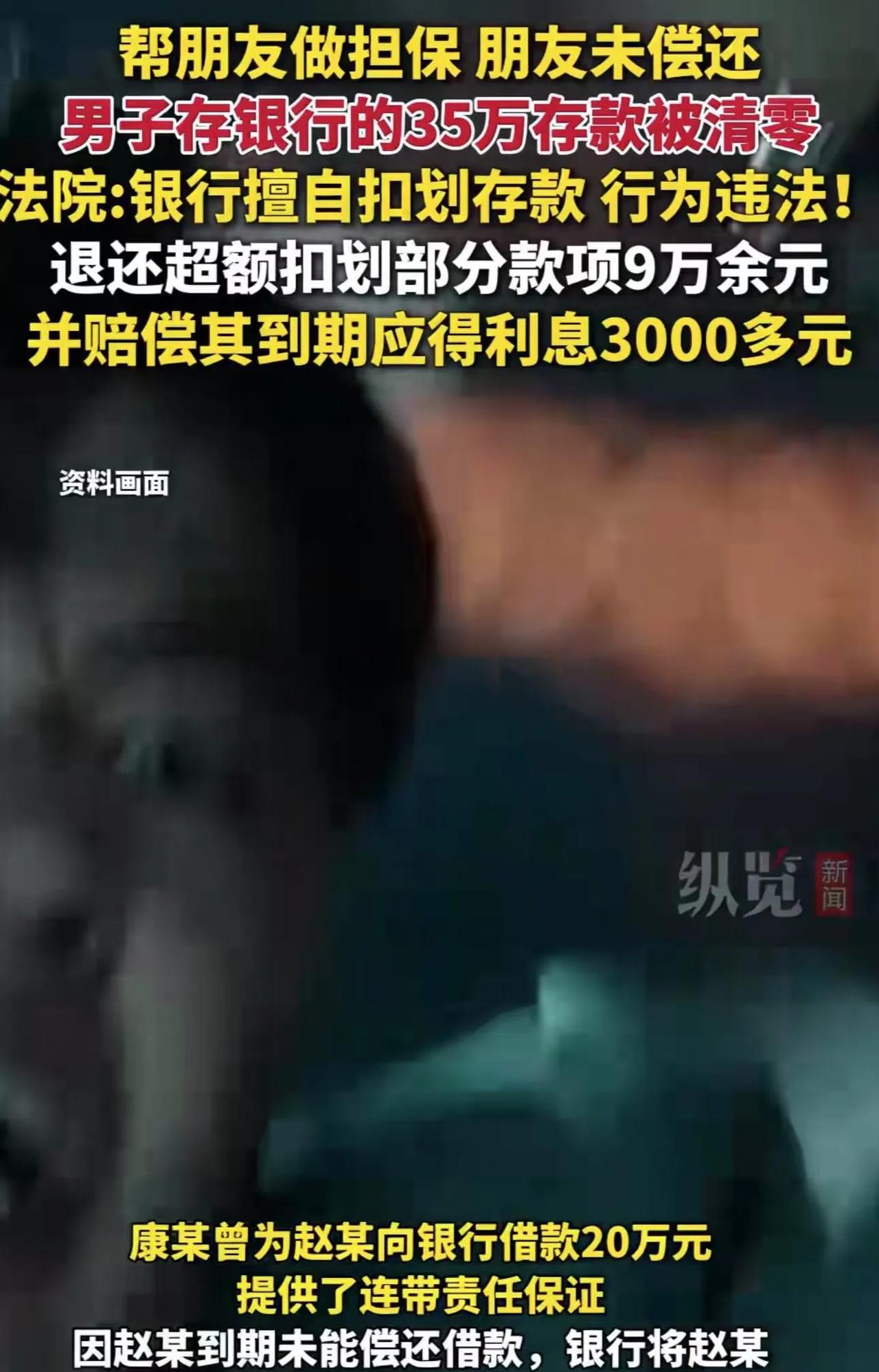 男子在银行存了35万,去取款时发现账户余额为0!银行:你帮朋友做担保,朋友未偿还,扣你的钱来偿还!男子不服,把银行告上法庭!法院:银行擅自扣划存款,行为违法,网友:原来银行是真的可以随意划拨控制我们的账户余额,而且权限还很普遍! (来源:九派快讯) 2024年,老康将35万辛苦积攒的血汗钱存入银行,想着儿子结婚时能派上大用场。 可是当他去银行取款时,眼前的账户余额却如同一记重锤,将他砸得晕头转向——账户余额竟然为0! 老康大脑瞬间一片空白,他心急如焚,询问工作人员自己的钱究竟去了哪里? 可是工作人员说,钱被银行扣划了,用于偿还他作为连带保证人的债务。 原来,2013年的时候,老康出于对好友老赵的信任,为老赵向银行的20万元借款提供了连带责任保证。 可是老赵到期未能偿还借款,银行一纸诉状将老赵和老康告上了法庭。经过漫长的司法程序,判决生效并进入执行阶段,但遗憾的是,执行并未能顺利到位。 到了2024年,银行偶然间发现,作为老赵连带保证人的老康在该银行存入了35万元。于是擅自扣划了这笔存款。 原本担保的借款本金及利息不过26万,银行却将35万存款一扫而空,多扣了整整9万。 老康看认为银行擅自扣划的行为违法,于是将银行告上法庭,只为讨回一个公道。 法院经过审理,明确指出老康在银行存款,双方已然建立了存款合同关系,银行负有保证储蓄安全的合同义务和法定义务。 而该银行却无视法律,越过司法执行程序,擅自扣划康某的存款,其行为严重违法。 最终,法院判决银行退还老康超额扣划的部分款项9万余元,并赔偿其到期应得利息3000多元。 此事引发了热议,有网友说,这个事情你们都没掌握关键点:就是你的钱存在银行,银行可以在没有密匙,密码,授权,口令的情况可以划走你的钱?而你自己取钱时还的要密码,要口令,要授权。就好比你买的房子,他们不用钥匙随时进你的屋。你买的车,他们没有遥控随时开你的车。 也有网友说,欠钱20万,即使有法院判决书也该划扣20万,为什么全部划走了?而且不通知被害人? 还有网友说,这叫越过司法程序划款吗?不告而取是为贼!这叫盗窃!是刑事犯罪!退钱就可以了吗? 我觉得,这样的判决结果让人感到无奈和不满。就仅仅判退还超额部分及存款利息,没有对银行的其他违规行为进行更严厉的处罚,这对于银行来说,不过是隔靴搔痒,根本起不到实质性的警示和约束作用。 银行作为金融体系的重要支柱,本应秉持诚信、公正的原则,保障客户的合法权益。可此次事件中,银行却肆意侵犯客户的财产安全。 最后,提醒大家:千万不能随便给人做担保,哪怕是亲哥亲姐亲弟亲妹,亦或是表亲。在利益和债务面前,人性的复杂往往超乎我们的想象。当他们无力偿还债务时,你就得被迫背上沉重的债务包袱。 现实中,被自己家人骗得倾家荡产的案例数不胜数。在涉及金钱和担保的问题上,一定要慎之又慎,切莫让一时的信任和义气,毁了自己一生的积蓄和幸福!#头号创作者激励计划#