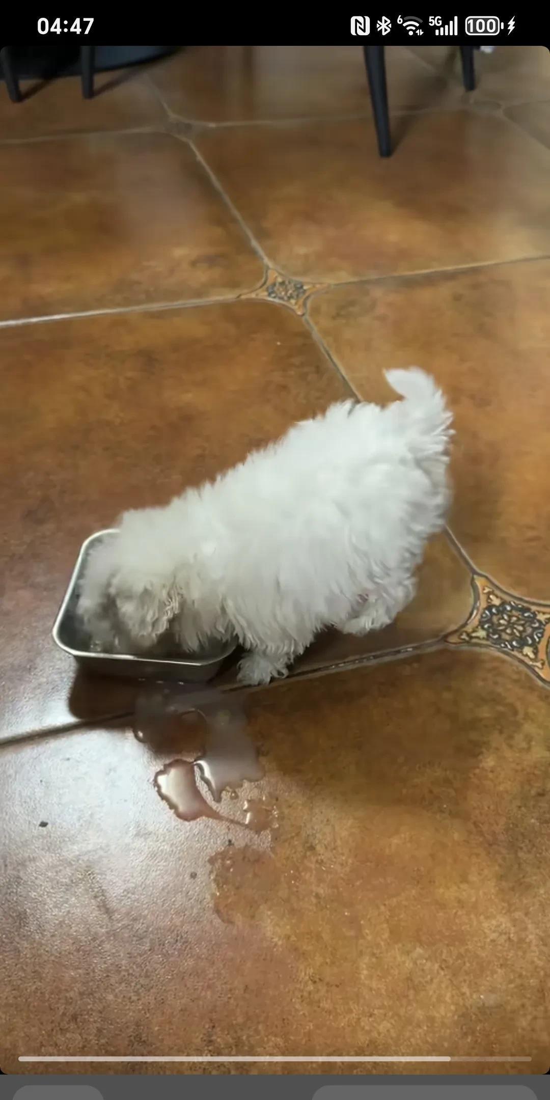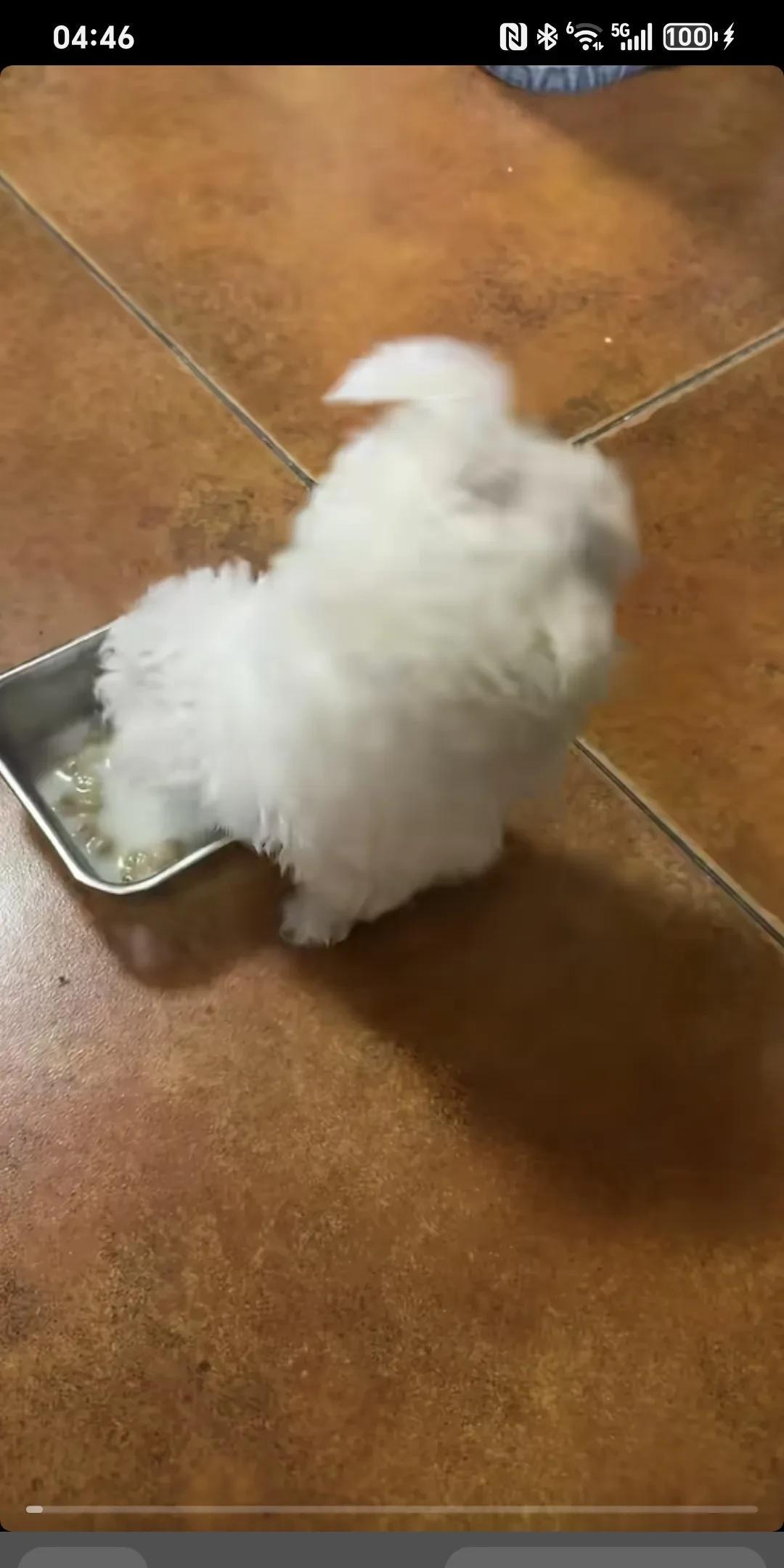 不到一斤的小奶狗吃饭,一头栽进了饭盒里~ 以为饭在这边...没想到我手里拿的饭盆
