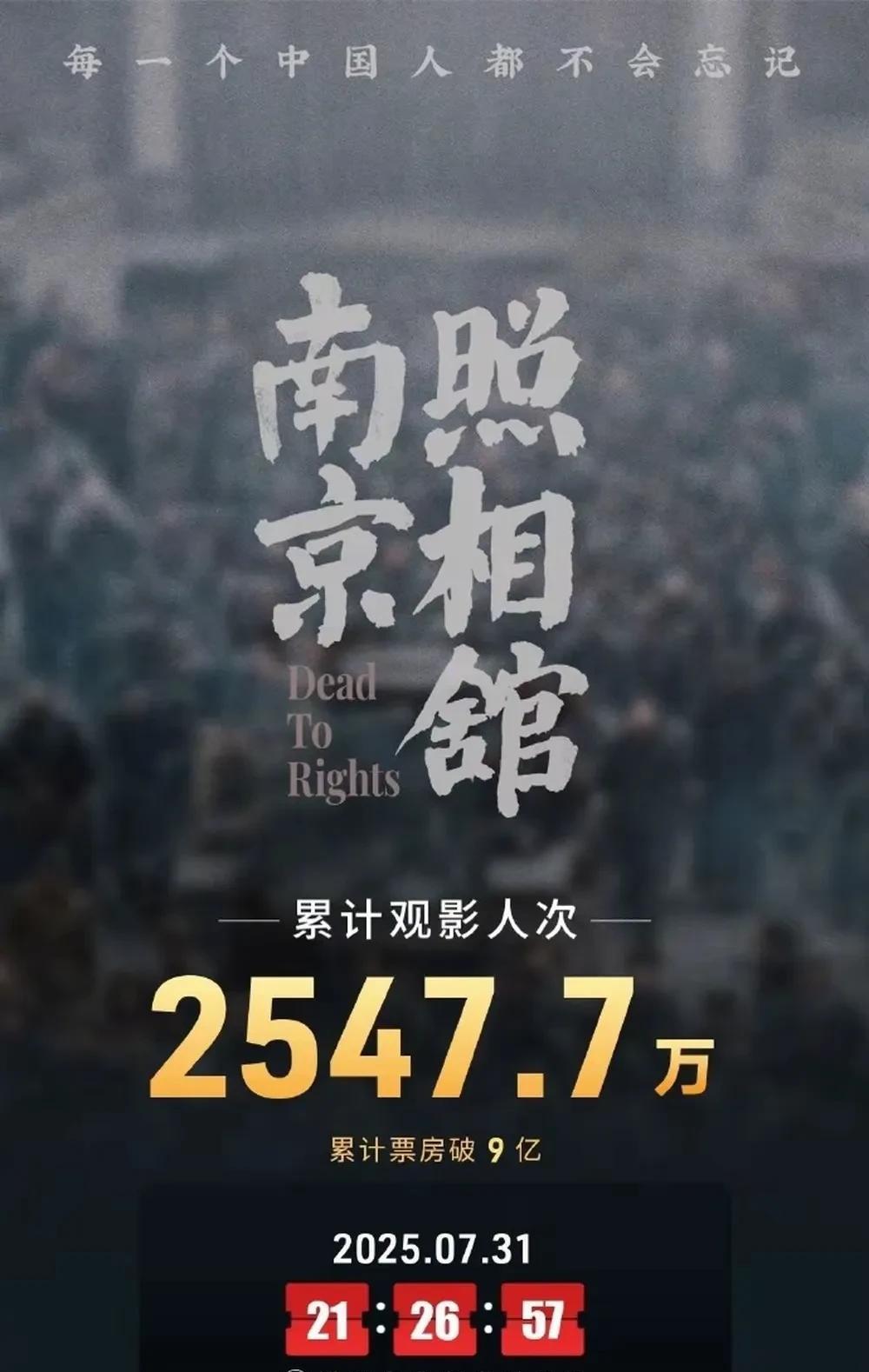 《南京照相馆》上映7天,票房已突破9亿元,排名占比已接近40%,票房占比更是达到