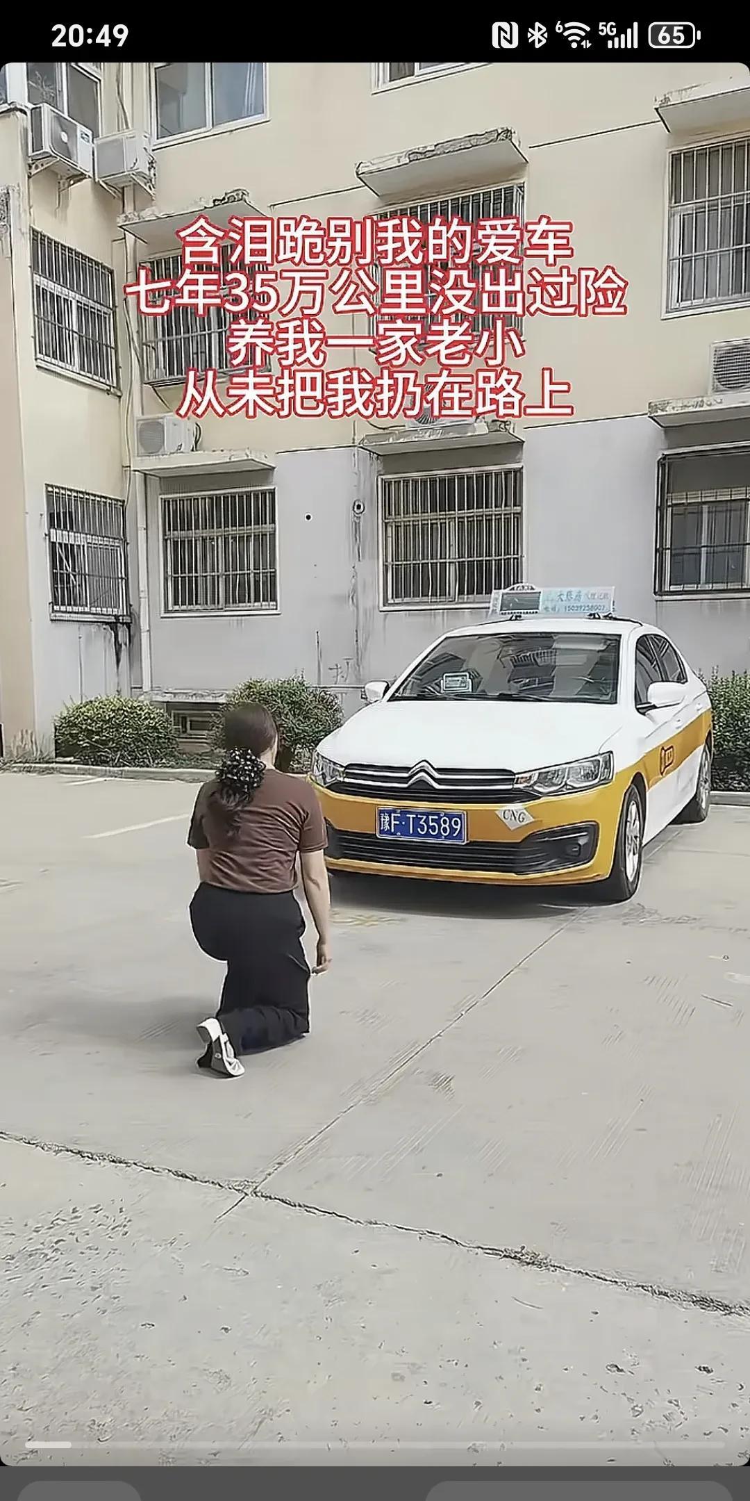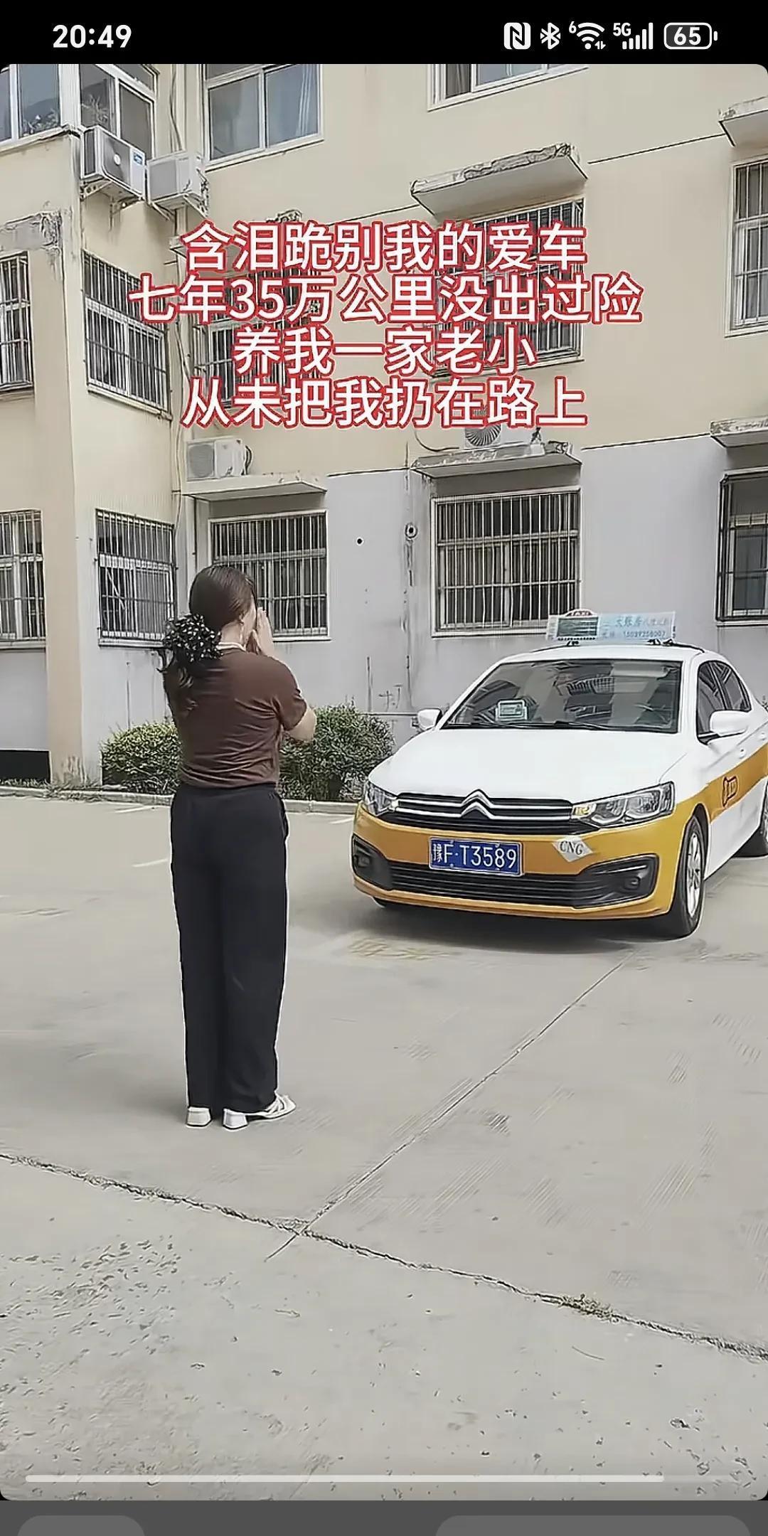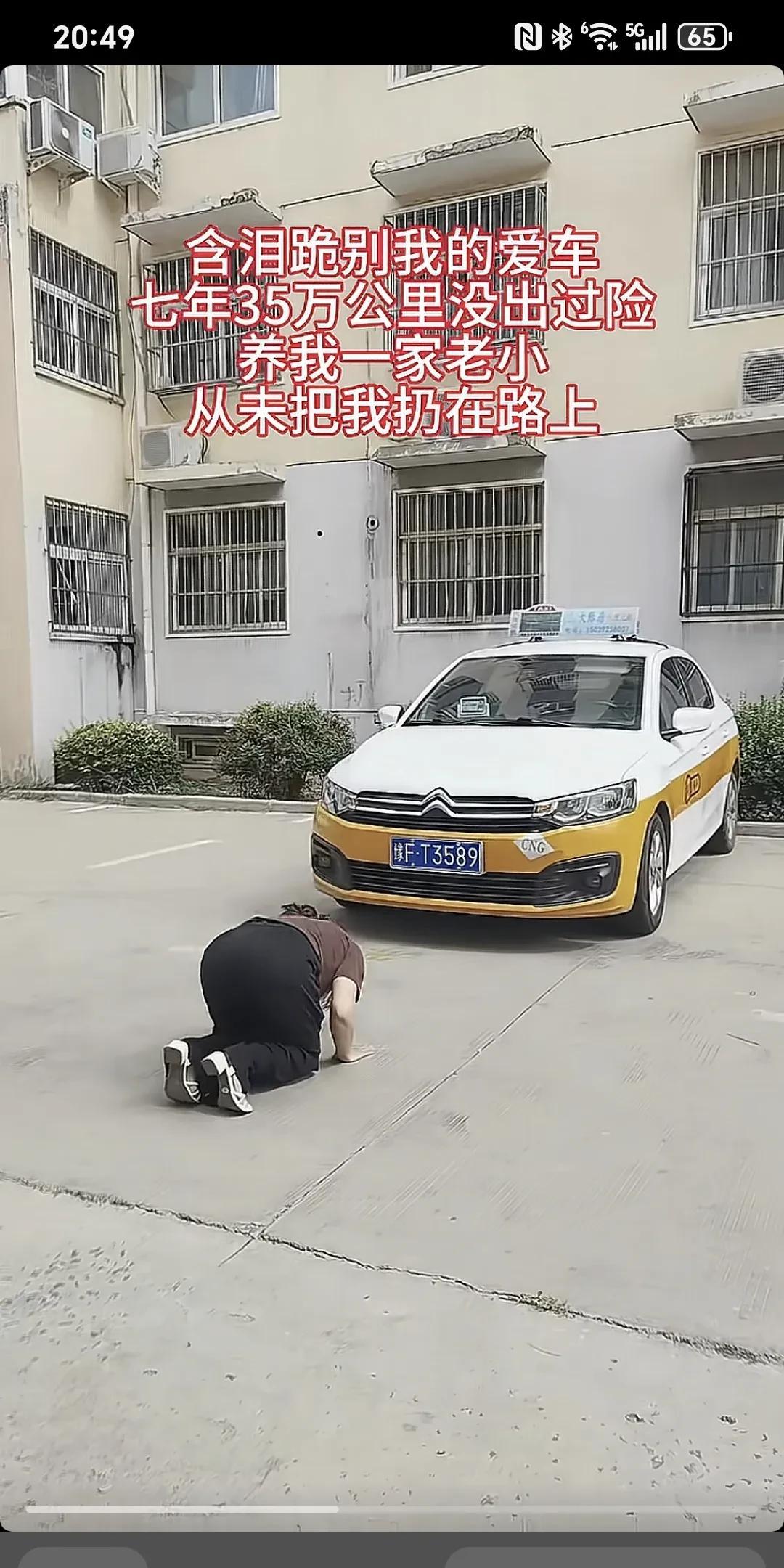含泪跪别我的爱车,七年35万公里没出过险,养我一家老小,从未把我扔在路上~ 出租车响应国家号召提前换电池,报废我的爱车,七年35万公里零出险,养我一家从未把我扔在路上,感谢风雨陪伴,纵有万般无奈,也要挥手告别!心爱的老伙计,再见了! 善良的人是很有感情的。无论任何事物日久会生情。