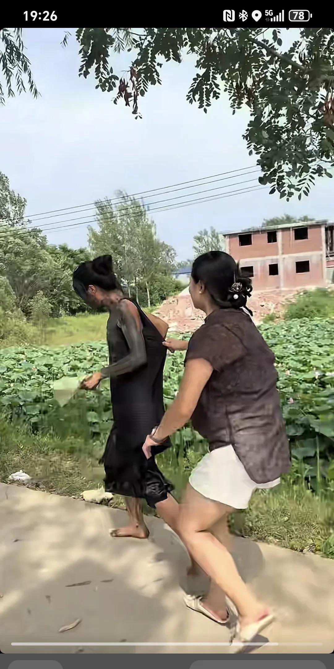 婆婆就是故意的~ 婆婆拉住儿媳妇的脚和手让儿媳妇揪荷花,婆婆一边拉着一边说“那个