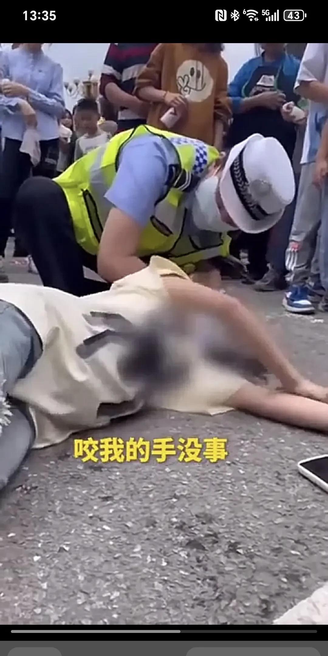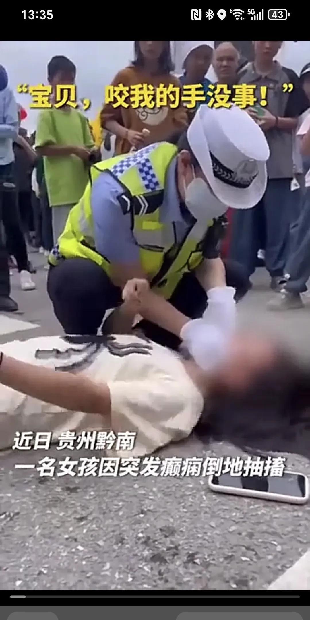 宝贝,咬我的手没关系的~ 近日,贵州黔南有个女孩突发癫痫而抽搐起来。在附近执勤的