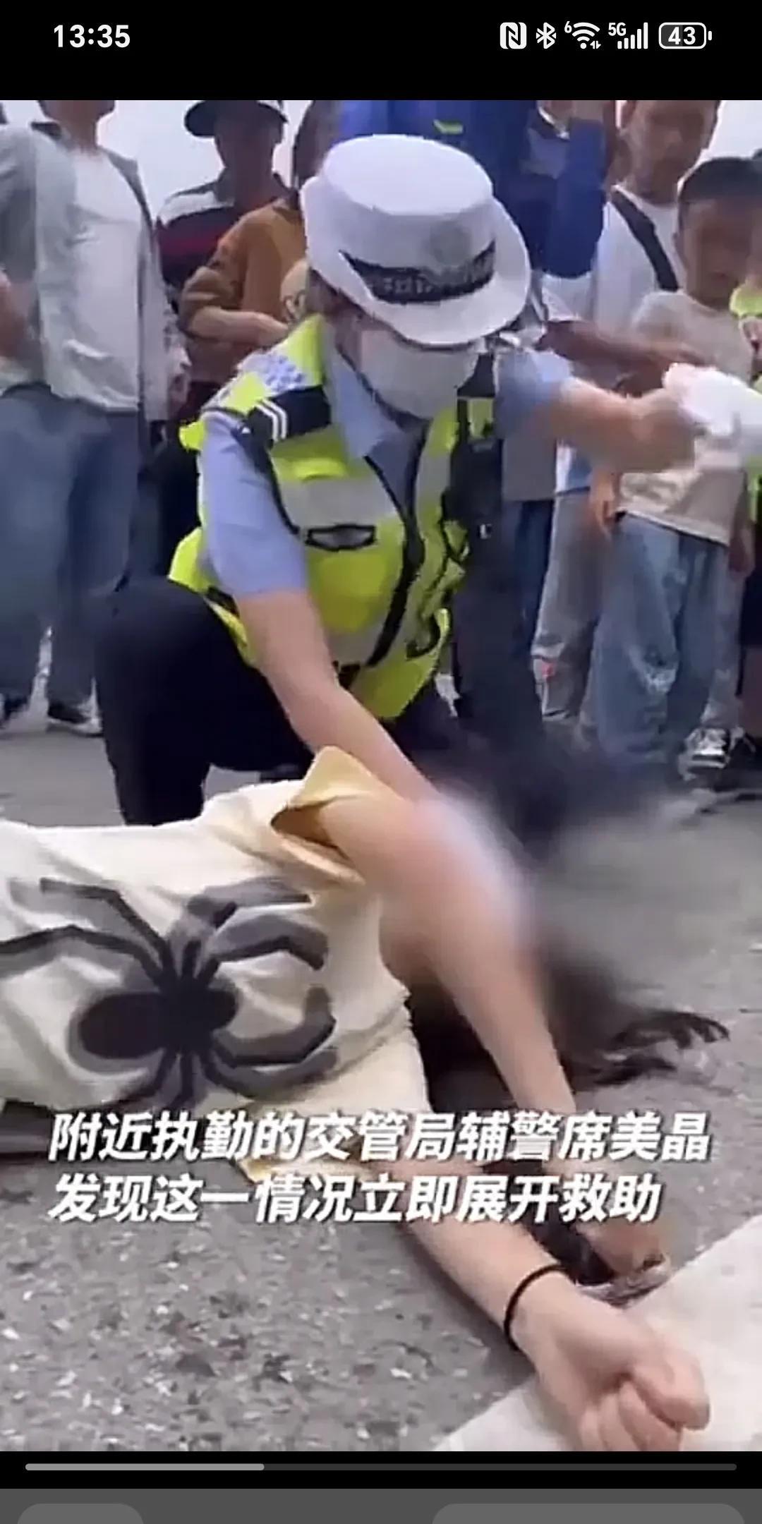 宝贝,咬我的手没关系的~ 近日,贵州黔南有个女孩突发癫痫而抽搐起来。在附近执勤的交管局辅警席美晶发觉这一情况后,马上展开救助,“你咬我的手吧,宝贝,别动别动,咬我手,咬我的手没关系的,咬我的手,没事没事没事。好了,好了,好了。”经过五分钟的救助,女孩慢慢恢复了意识。席美晶就蹲在女孩身旁安抚她的情绪,一直到医护人员到来。 这女警察让人好感动,直呼咬我的手没事,一般人做不到,好暖心啊,感动的热泪盈眶。