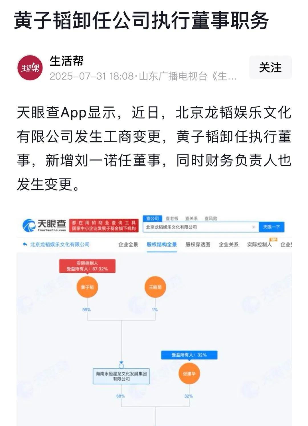 #黄子韬卸任公司执行董事职务#黄子韬卸任执行董事的消息一出,不少人感慨:以他如