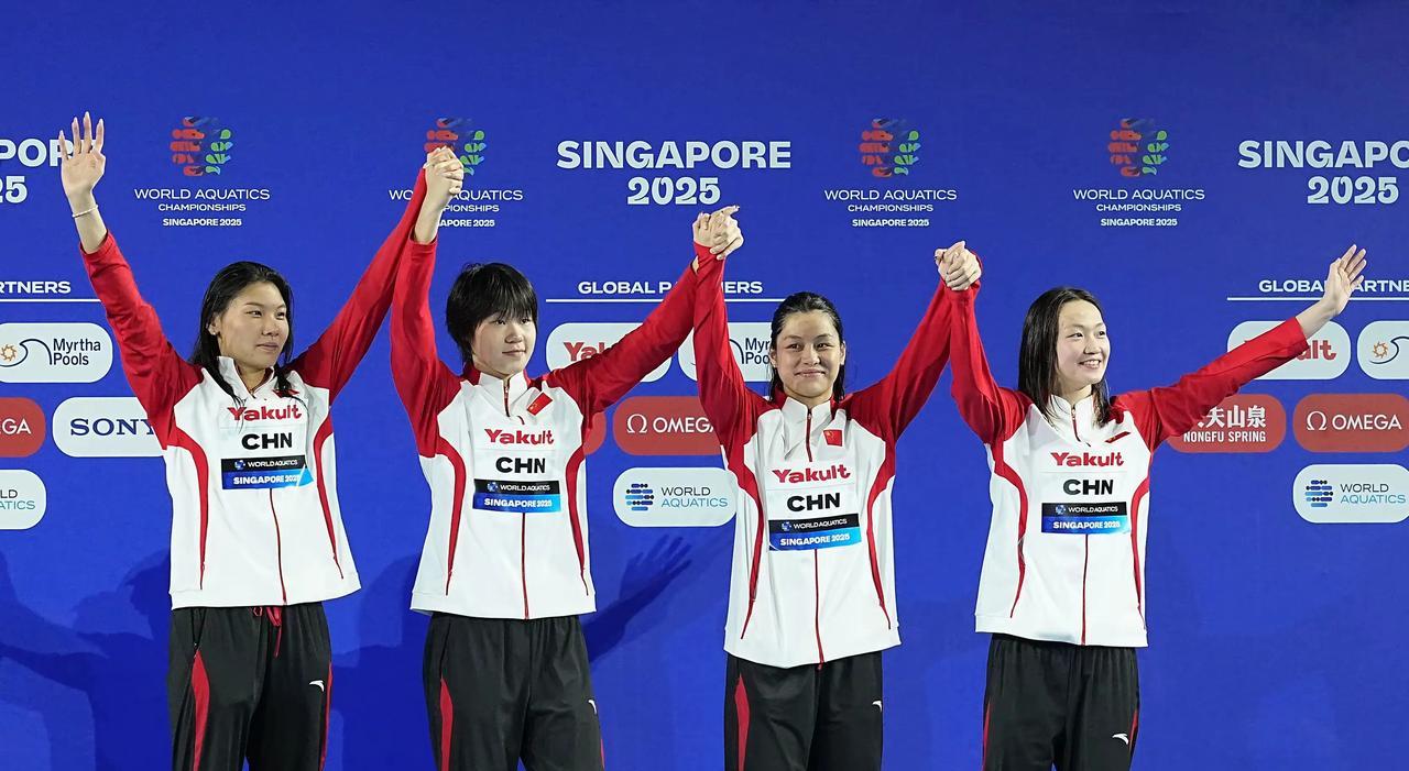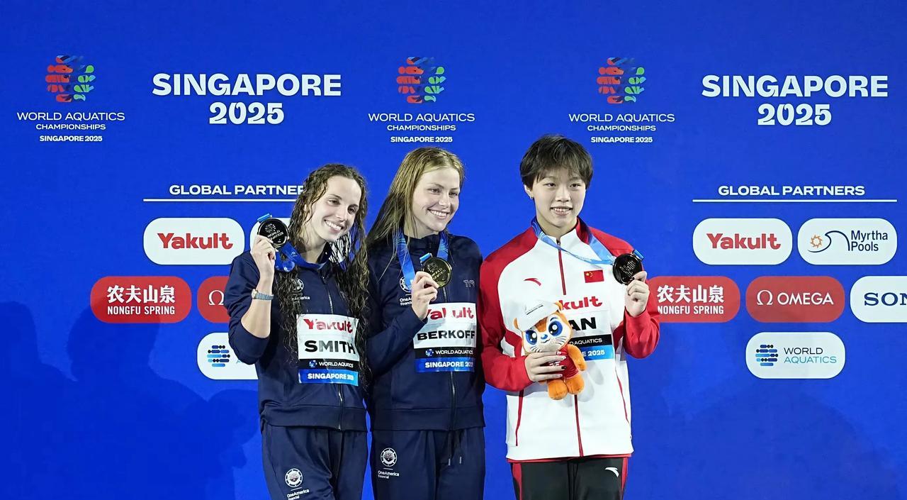 新加坡游泳世锦赛结束了游泳项目第五比赛日的争夺,中国队再枚两枚铜牌,20岁的万乐天以27秒30获得女子50米仰泳铜牌,这是继2007年傅园慧摘银后,中国运动员时隔8年再次站上世锦赛该项目领奖台,美国队的凯瑟琳·伯克夫和丽根·史密斯分别27秒08和27秒25获得冠亚军。由柳雅欣、杨佩琪、余依婷、李冰洁组成的中国队以7分42秒99获得女子4×200米自由泳接力铜牌,澳大利亚队和美国队分获冠亚军。