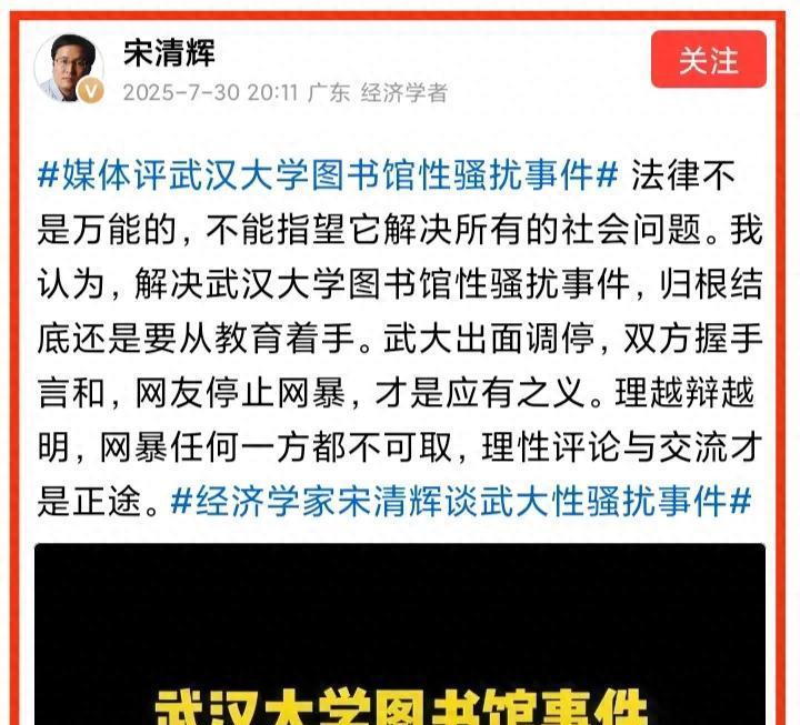 宋清辉 劝杨某媛和肖同学握手言和, 还说大家不能一味苛责杨某媛! 当他说出“握手言和”四个字时,肖同学的家人正遭受着痛苦。 那个被摄像头证明清白的男生,如今要靠药物对抗抑郁发作。 杨某媛在做什么? 她正给自媒体发律师函,举报肖同学申请留学的学校,甚至找到对方父母单位要求开除。 宋清辉口中“都是受害者”的施暴者,至今未有过半分愧意。 现在有人建议受害者与举刀者和解,这和解劝架的路人有什么两样? 真正的公允不该是各打五十大板。 当一方家破人亡,一方耀武扬威,任何"理性中立"的调停都成了变相的偏袒。 宋清辉说不要网暴,却忘了最先举起网络屠刀的是谁。 隔岸观火的和事佬开错了药方 伤痛不在自己身上,劝人大度总是容易的。 但那些劝和的声音或许该想想: 如果自家老人被气得住院,孩子被逼得抑郁,是否还能轻描淡写地说出"握手言和"四个字? 真正的公允从来不是各打五十大板,而是该认错的认错,该疗伤的疗伤。 当舆论场变成比谁嗓门大的擂台,那些劝你“算了”的声音,往往最先背叛沉默的苦难。