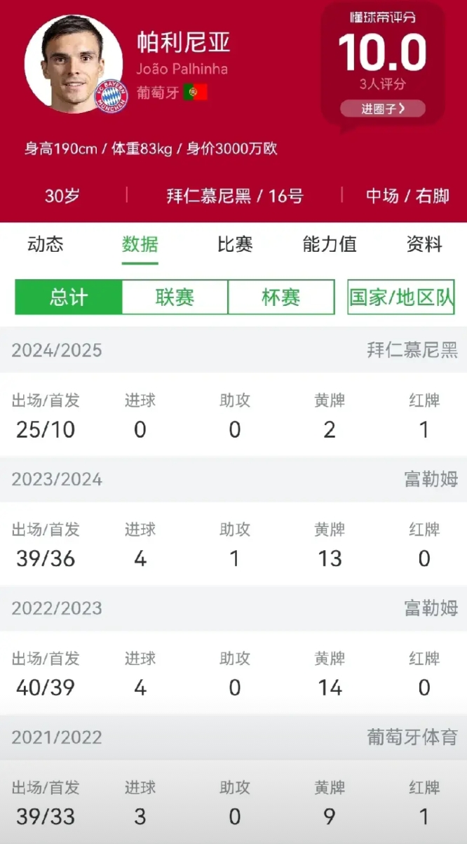 拜仁真是个大善人啊,热刺又捡个大便宜。话说曼联为何不下手呢? 真不知道拜仁高层怎么想的,帕里尼亚人没来的时候图赫尔就下课了,你也不问新教练需不需要就给买来了。 帕里尼亚也是惨,来了拜仁主教练换成了传控体系的孔帕尼了,根本就没有他出场的机会,好不容易上场还吃个红牌差点让拜仁输球。之后就被彻底打入冷宫了。 算了,租借去热刺也好,反正孔帕尼不下课帕尼尼永远都没机会出场,一年之后说不定拜仁就换帅了呢,到时候再回来还有机会,在热刺先找回状态吧。