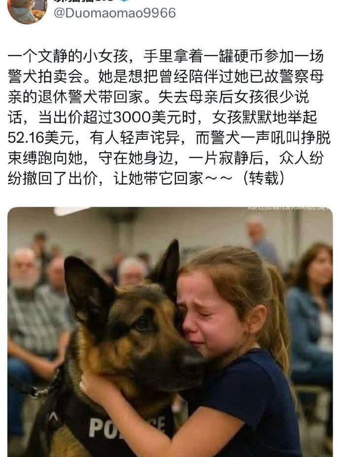 旧版本不是警车和小男孩嘛,怎么又改成警犬和小女孩了? 这该不是意林老祖也用上AI了吧,不过,这味儿太冲,配方好熟悉,恕我直言,还不如原著呢。 唉,这帮吃犬粮的看来都是文科生,它们编的东西,从来不考虑逻辑,只提供情绪……能忽悠一个是一个啊。