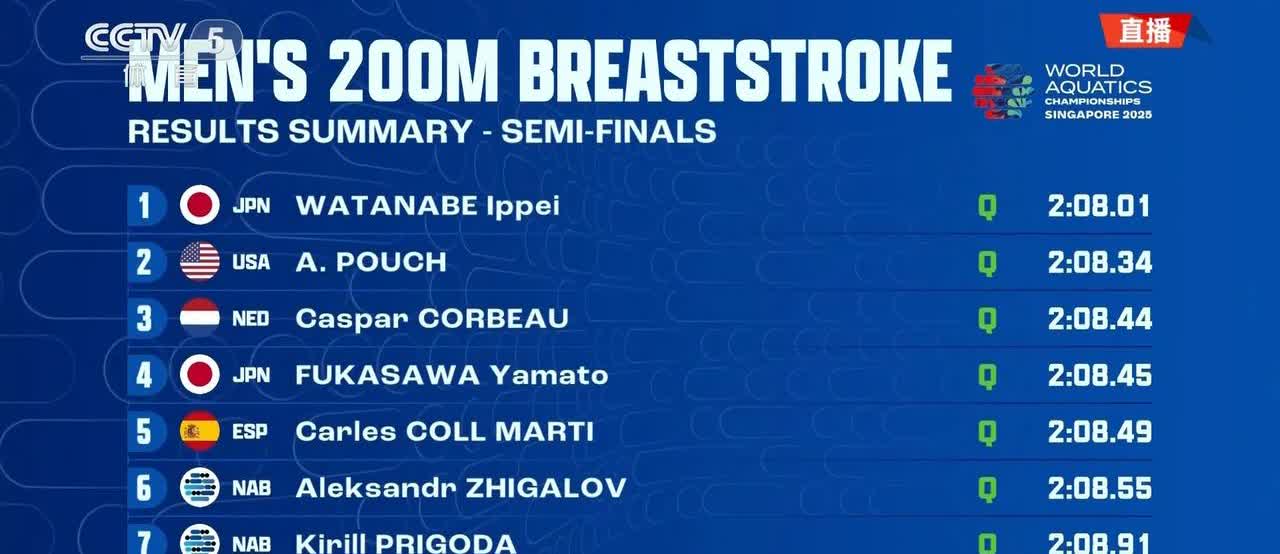 游泳世锦赛第六比赛日五项决赛,中国游泳队1个冲金点 第五比赛日中国队再次无