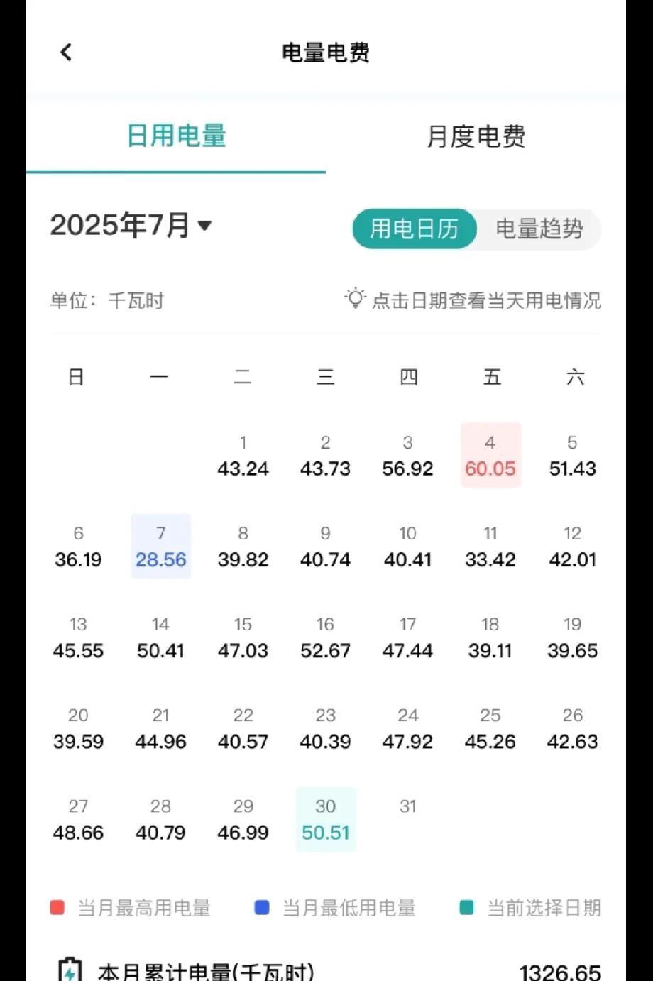 你家上个月电费用了多少?全网都在晒七月份电费啊!看到这些土豪的电费,我心理瞬间平衡了很多。 我真的佩服这些大佬,一天一百多块钱的电费是怎么用出来的?我怀疑家里是开店或者开厂的吧?自己家里怎么可能用得了这么多的电? 话说七八月份是电费最贵的两个月吧?南方没空调根本没法过。 其实电费跟咱们的空调是几级能效有关系,我用的格力一级能效1.5匹的。晚上十点到早上八点,用了四度多点的电。一个月200块钱不到。 有人问这个玩意儿怎么调出来?答:网上国网app就能查到。