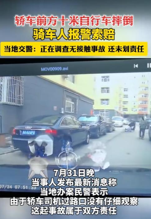 “这以后谁还敢开车?”7月24日,山西大同,一女子开车在小区内右转弯后,10米外,一人骑着一辆自行车摔倒,结果,骑车人报警,居然向女子索要赔偿,当地交警表示:正在调查无接触事故,还未划分责任。网友:离了个大谱,这也能怪司机? 当天早上,女子开着车从小区里出去,到了一个拐角,她打了转向灯,左右看了看没人才慢慢往右拐,谁能想到,车刚转过弯没走几步,就听见前面“哎哟”一声,她赶紧停车,这一看可愣住了。 距离她车头差不多10米远的地方,一个骑自行车的大姐摔在地上,车把都歪了,本以为和自己没有关系,这中间还有一位距离车更近的大妈都没摔着,可不曾想,这大姐居然报警了。 大姐觉得是车开着吓着她了,这才摔得,没多久交警就来了,围着现场看了半天,又调了小区的监控,最后说这属于“无接触事故”,具体责任咋分,还得再调查调查。 传到网上之后,网友们炸开了,有个大哥留言:“这可真是离了个大谱,10米远摔倒都能赖司机,那以后开车出门,不得带着雷达扫描啊?”还有人说:“骑车不看路摔了怪别人,这要是走路自己绊倒了,难道还得怪修路的?” 不过也有懂行的人说,这种无接触事故以前也有过,比如开车突然变道,旁边骑车的为了躲车摔倒,司机可能还真得担点责任,但像这种离得这么远的,确实少见,自己明明规规矩矩开车,怎么就摊上这事儿了? 万一真判自己有责任,那以后出门都得提心吊胆的,其实,不管是开车还是骑车,在小区里都得多加小心,尤其是小区里老人小孩多,慢慢走、仔细看,总没错。 但要是真遇上这种说不清道不明的事,也只能等交警调查清楚再说。 信息来源:《轿车前方10米外,一人骑自行车摔倒,骑车人报警索赔看呆网友!交警回应》极光新闻