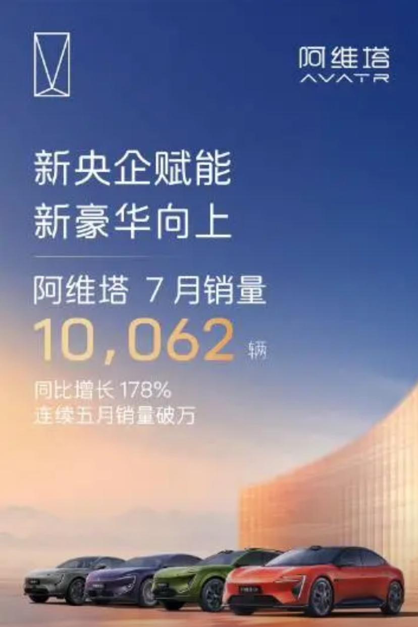 华系已有三家公布7月销量,深蓝27169,阿维塔10062,岚图12135,均月