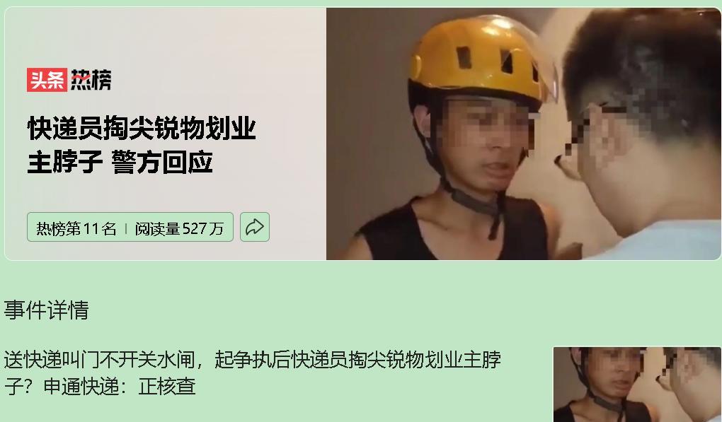 快递员徐某某竟持刀划伤业主,这背后到底是咋回事?24 岁的他因退货纠纷瞬间 “变脸”。业主退货时,快递公司却 “甩锅”,认定投递没问题强制退回,这售后机制咋就这么僵呢?快递员联系业主无果后上门,直接关闭业主家水闸,这胆子也太大了,热水器直接 “报废”,冲突就此爆发。这快递公司把矛盾直接 “塞” 给员工和客户,太不负责任了吧。 再说那行凶工具,网上分析是快递员日常拆快递的家伙什。这本是为了提高效率的,可在情绪失控时,就成凶器了,企业对这高危工具的管理明显有漏洞啊。 维权成本高得离谱,打官司得 3 - 10 万元,而快递员被投诉就是直接扣薪,申诉还无门。当法律途径让人 “血亏”,弱势群体就容易陷入 “零和博弈”,这事件就是底层互害的悲剧啊。 申通回应 “快递袋通用”,这是在避重就轻。2025 年修订的《快递暂行条例》都明确要求企业健全安全培训制度,可实际呢?要是只把这当 “个人纠纷”,那行业问题永远解决不了。 当关水闸成了催收手段,拆快递刀变成伤人凶器,企业到底咋把成本暴力转嫁给社会的?这 “投诉即罚员” 的懒政逻辑不打破,下一个冲突就在路上,又该咋避免呢?#快递员掏尖锐物划业主脖子 警方回应#