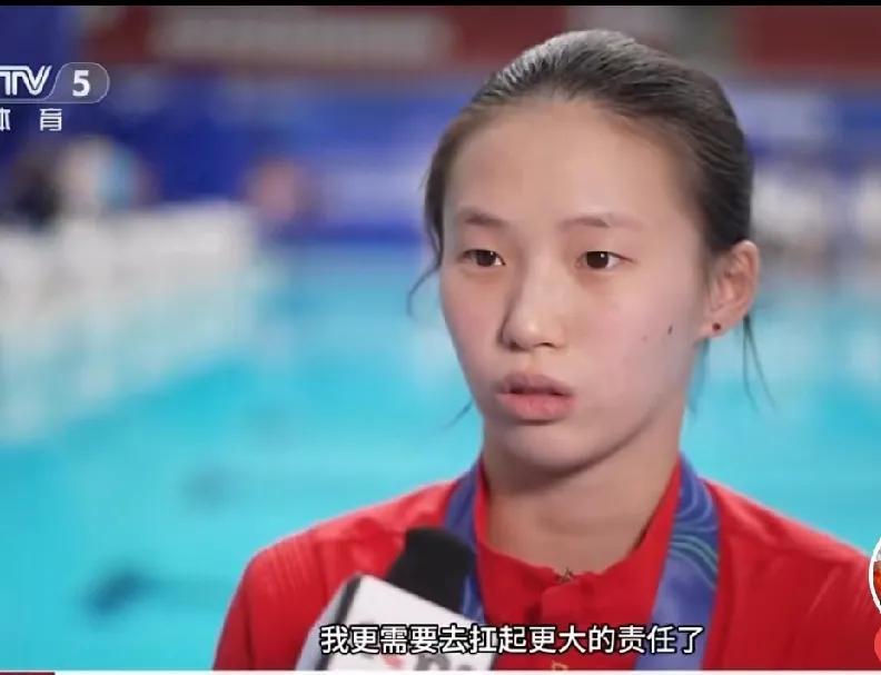 陈芋汐夺冠后,最让我意外的不是她落泪了,也不是她拥抱了谢佩玲,而是她在赛后采访的时候,提到了全红婵!这是我没有意料到的的。 陈芋汐面对央视采访,说到了全红婵。记者问她会不会有压力,她说压力肯定会有的。这次的双人跳换搭档了,身边的人也不再是小红了,我更需要去扛起更大的责任! 看似简简单单一句话,我觉得其中的内涵非常多。 第一说明,全红婵在陈芋汐心里的位置,那是相当的重要。她俩多次配合,拿了那么多的双人冠军,配合得天衣无缝,的确令人难忘。 第二说明陈芋汐一直没有放下全红婵,就算全红婵没有参加世锦赛,那么从陈芋汐方面来说,也是处处以全红婵为榜样。 第三说明全红婵在跳水队伍当中的绝对权威作用,她就是跳水队的定海神针,有她在,陈芋汐也会放心。 第四说明全红婵已经深深影响到了陈芋汐,她会主动担当起自己的责任,不会让人对跳水队失望。 所以我觉得,陈芋汐说话非常的诚恳,没有忘记曾经的队友,没有忘记她们一起书写的辉煌,有责任,有担当,这一点是非常难能可贵的。也是我没有想到的。 这个小姑娘,真的让人刮目相看!