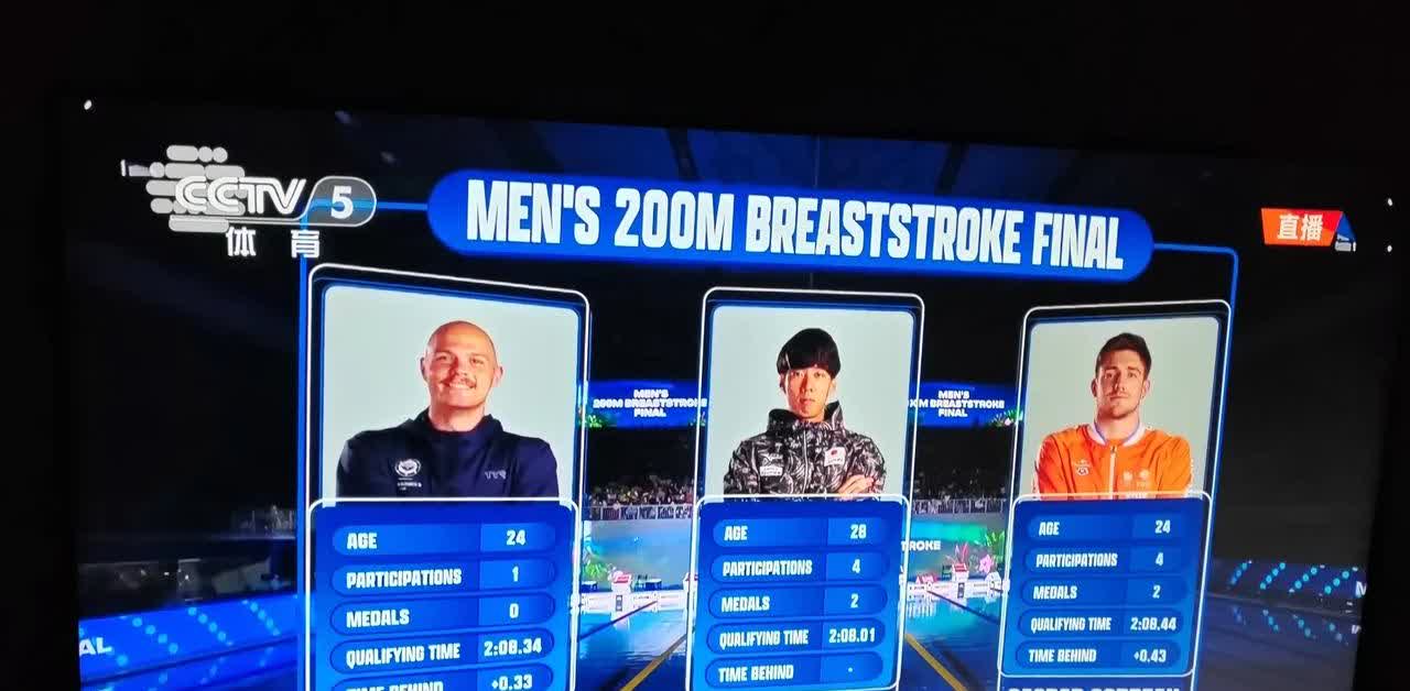 牛!牛!牛!2分07秒41! 覃海洋200蛙决赛。 冠军! 原来以为: