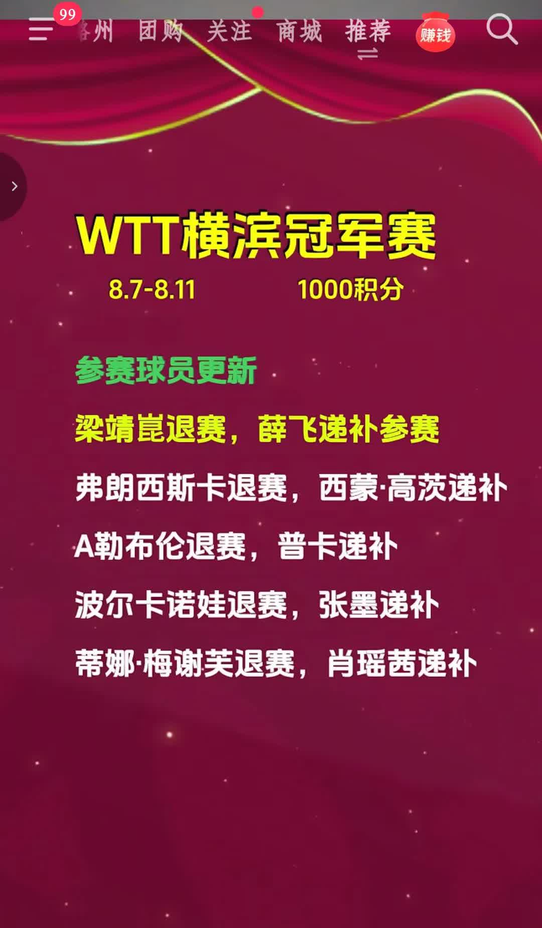 我感觉接下来欧洲大满贯非常好看!一群欧洲大汉纷纷退横滨赛,等着火拼欧贯,有热闹看了!他们好聪明,话说这瑞典大满贯都虎视眈眈啊,毕竟2000积分还是希望在楚钦不参加的情况下国乒拿到[祈祷] 感觉梁甜甜退了横滨是好好休息准备瑞满,不然瑞满真没人了!楚钦瑞满不参赛,那些外协更会拼得头破血流,好不容易都觉得自己有夺冠机会,尤其是雨果大小布,莫雷加德… 说实话,石头打大布小莫我认为没有任何问题,但他要是对上张本雨果和小布,我是有些担心的,但希望他抗住!