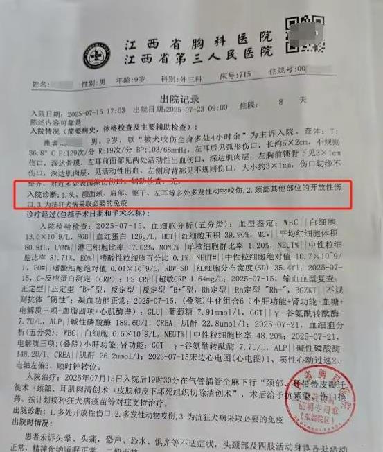 江西南昌,9岁男孩暑假去同学家串门,却被拴在进门处的大狗咬伤,治疗就花了1万4,