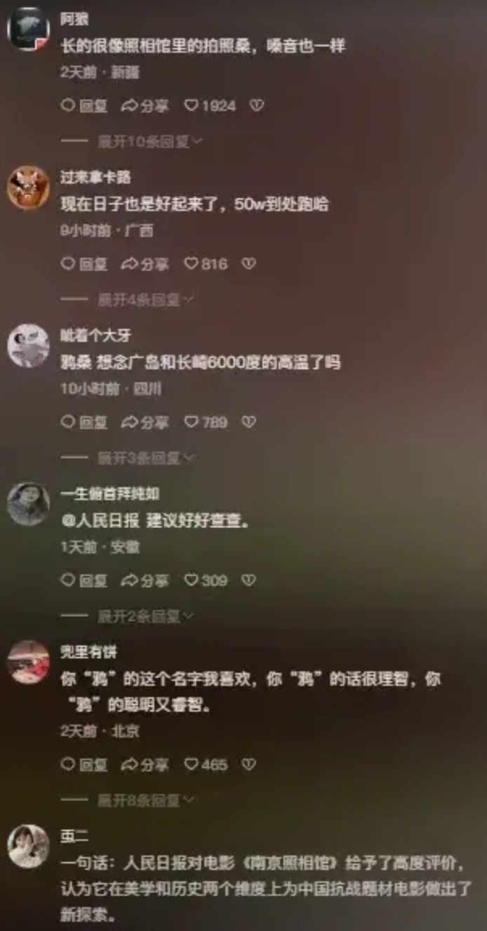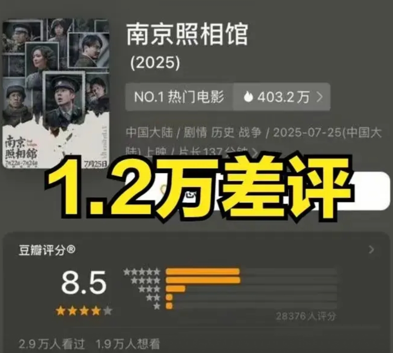 《南京照相馆》自上映以来,好评如潮。但也有很多差评。北京这位“鸦王说”博主,说“不给我一万块钱我就不去看”。 先不说创作团队的精工细作,实力派演员的倾情出演,主流媒体的正确引导。这1.2万的差评是怎么打出来的? 不忍看,不敢看,彻骨之痛,中国民族之崛起是对苦难同胞的抚慰,中国民族之强盛是对苦难同胞的回声,历史就是铁证,不容篡改,铭记历史,勿忘国耻。 铭记仇恨能激发民族凝聚力,让国人团结一心捍卫国家尊严。 历史不容许亵渎。