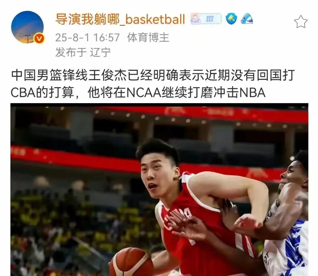 好样的!中国男篮王俊杰明确表示不会打CBA! 王俊杰因为在国家队的出色表现,多支CBA球队对其表示感兴趣,想要把其招入队中,可是近日有体育博主爆料王俊杰对这些球队说不,他将会继续征战NCAA,并追逐自己的NBA梦想! 现在效力NCAA的王俊杰应该也羡慕曾经的队友杨瀚森进入NBA,在NCAA可以更好打磨技术,提升能力,虽然回到CBA可能收入上会更诱人,但是随着林葳、余嘉豪“出逃”,大家意识到CBA不是一个可以让自己提升的地方,尤其是年轻球员!#万能生活指南#