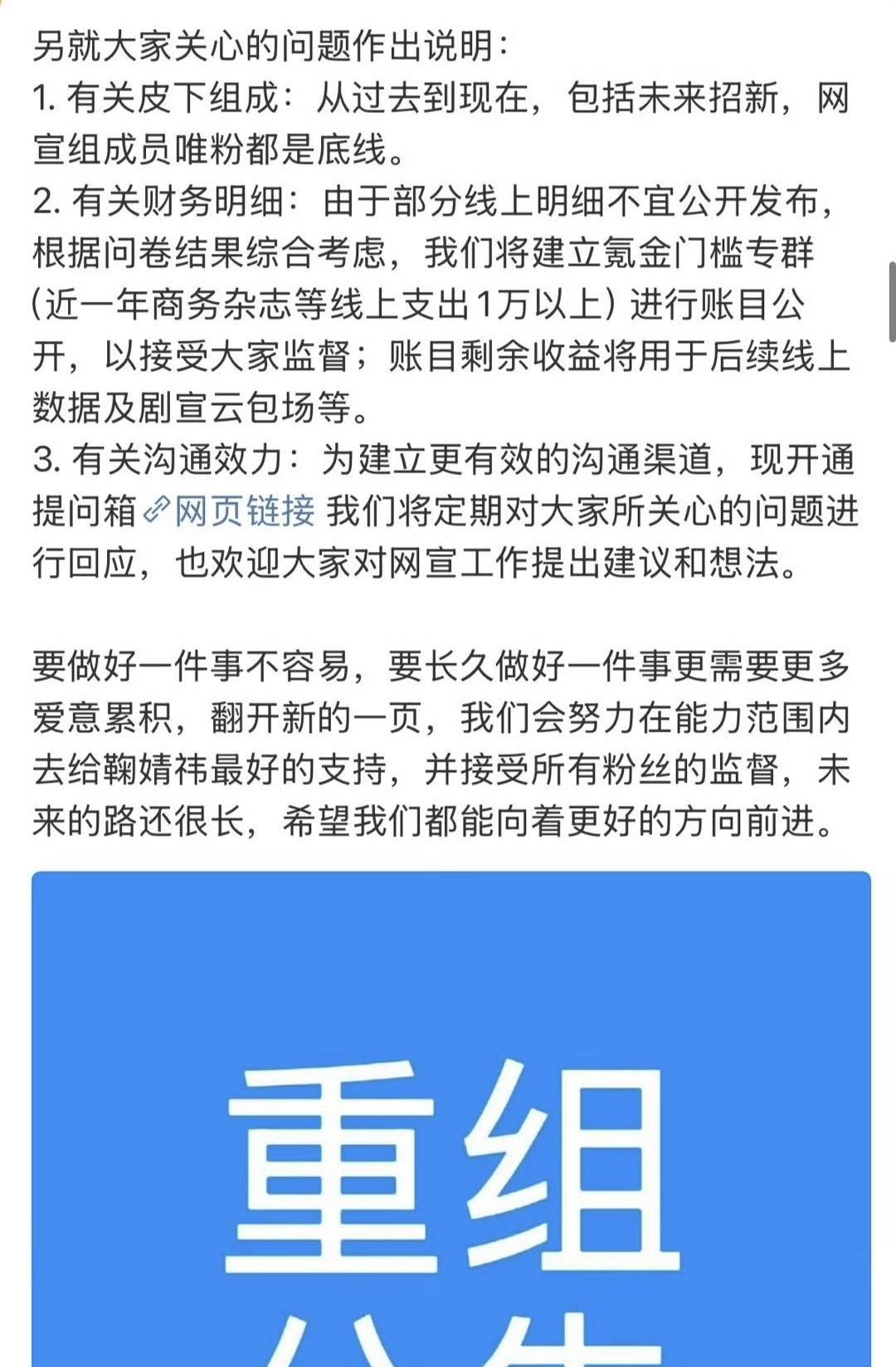 鞠婧祎网宣组发文宣布重组了,这是发生了什么?