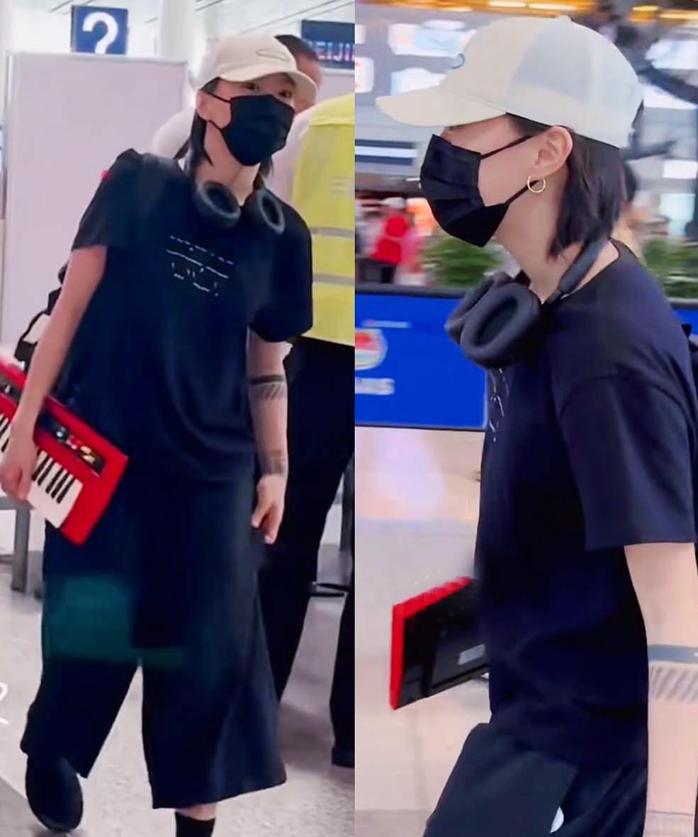 王菲女儿窦靖童机场出发,背影很像王菲。8.3窦靖童出发上海,去为演唱会做准备。和妈妈一样,窦靖童也很热爱音乐,这次出行穿搭也随身携带耳机、电子管风琴等。窦靖童一身黑的打扮,酷酷潮潮,看背影跟妈妈王菲很像。