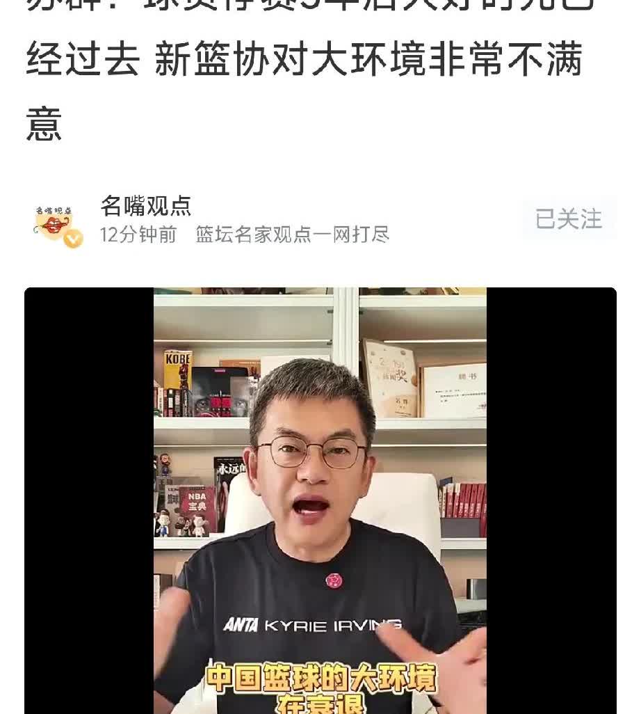 篮球名嘴苏群:新篮协对大环境非常不满意,重罚青年队球员三年!提到三点原因: 第