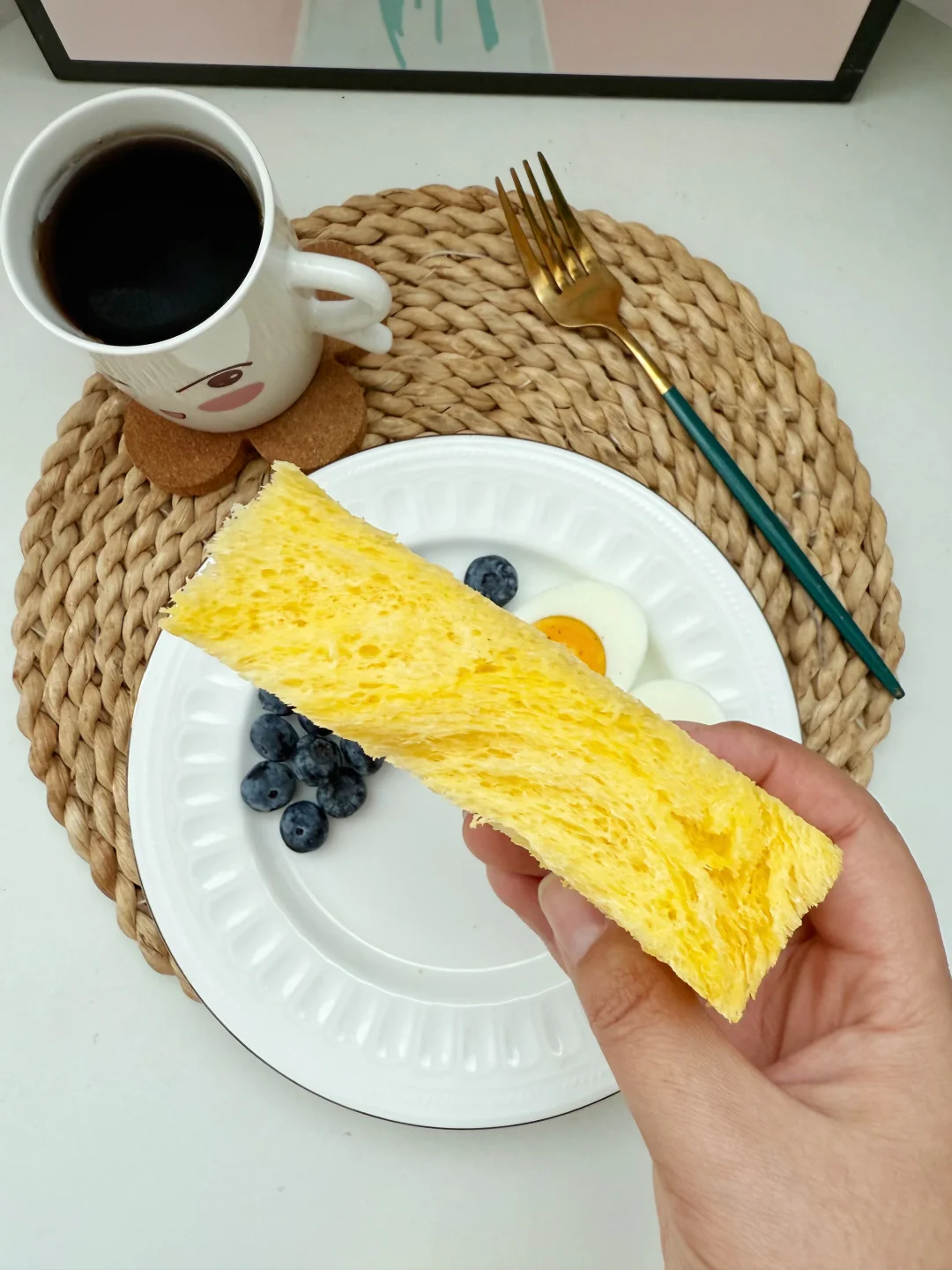 早晨的阳光透过窗帘洒在餐桌上,给自己来一份简单又美味的营养早餐。无边吐司片、蓝莓、鸡蛋和一杯香浓的咖啡,每一口都是满满的幸福感。 厚切无边嫩牛乳吐司,不添加一滴水,奶香浓郁,特别好吃,再来一个水煮蛋,几颗蓝莓,最后再来一杯咖啡,温暖了整个胃,也温暖了心情。 这样的早餐,不仅美味,还富含蛋白质和纤维,为一天的活力注入满满能量,快来试试吧,让这份简单却不失美味的营养早餐,成为你新的日常好味!