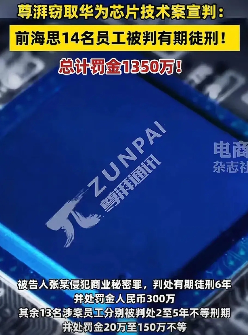 大快人心!罪有应得!尊湃当年窃取华为Wi-Fi芯片技术案尘埃落定,14人被判刑总