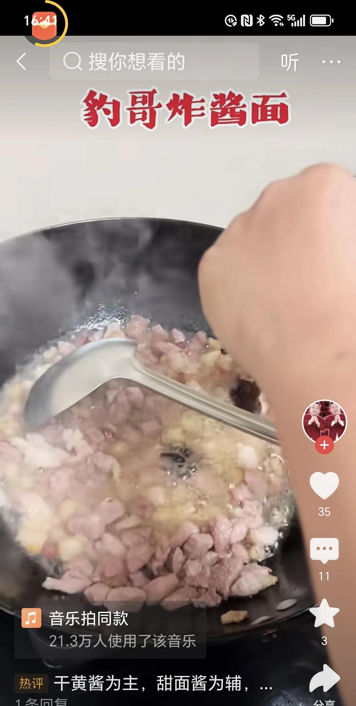 杨老五的徒弟豹哥也在看视频学做饭,做的同样是杨家最拿手的炸酱面。不过,豹哥做的炸酱面似乎较为简易,炸酱的部分好像没有完全展现出来,炸酱时火候的精妙之处也只是一笔带过。而他师傅在视频里做炸酱面时,每一步都细致入微地教给观众,当然,也可能是豹哥留了一手。
