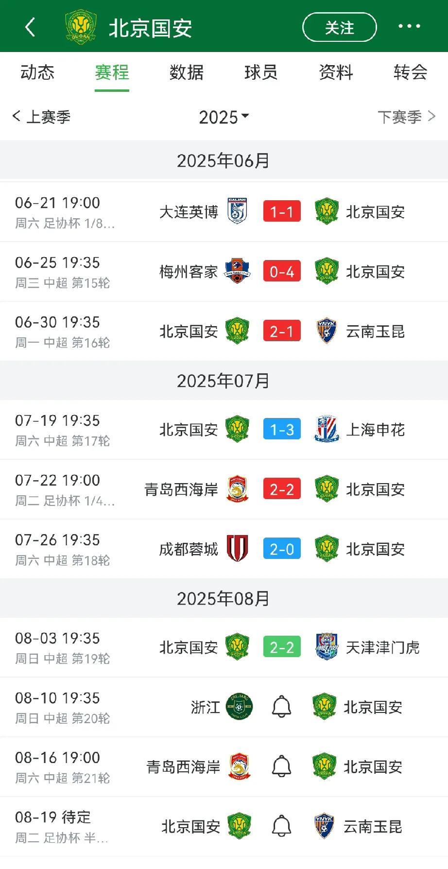 国安都快成英超的阿森纳了,开局猛如虎,后边二百五,在掉链子这件事上这俩真是一点都不含糊。 国安联赛好像已经四场不胜了吧,真搞不懂这间歇期国安到底经历了什么?难道是足协杯把运气都用完了? 拿了半程冠军居然还能丢冠,好像也就国安做得出来吧? 现在国安基本可以跟今年的联赛冠军说再见了吧?现在只能全力备战足协杯了,只有拿足协杯的冠军才能有资格参加下赛季的亚冠。