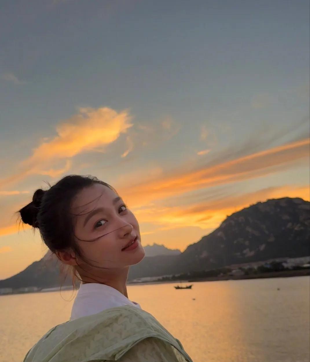捕捉到关晓彤的夕阳氛围感大片!落日余晖洒在身上,这溢出屏幕的美,谁能扛得住?