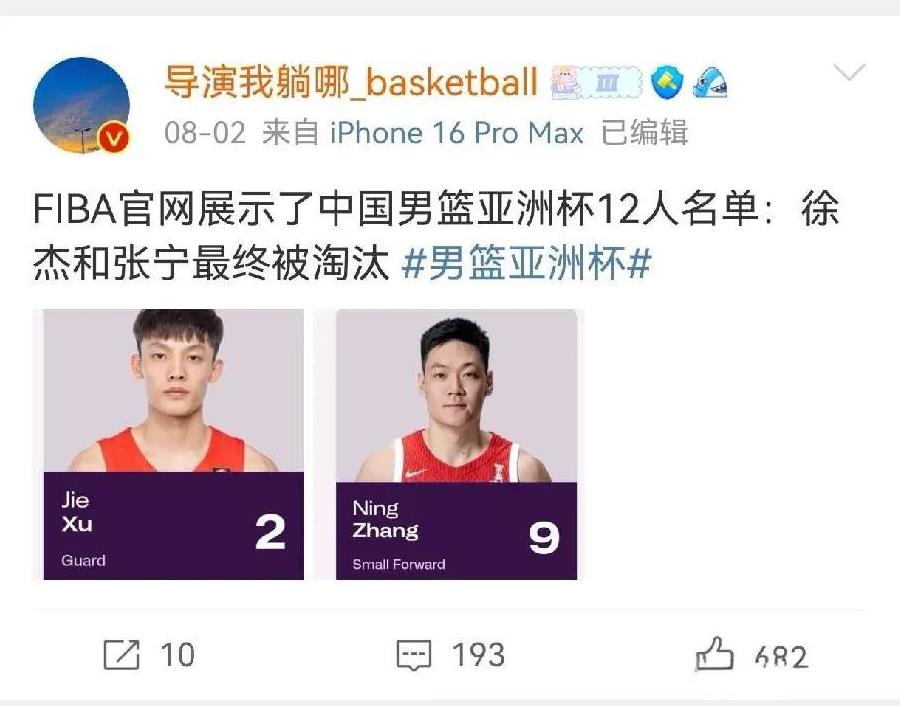 男篮大名单出炉!徐杰张宁出局,李祥波进大名单挺意外 明天男篮亚洲杯就开赛了,中国男篮12人大名单也出炉了,内线余嘉豪、胡金秋、王俊杰、李祥波,锋线朱俊龙、雷蒙、赵嘉仁,后卫线赵睿、高诗岩、胡明轩、廖三宁、程帅澎。 很明显张宁和徐杰出局了,其实也可以理解,郭指导非常注重防守,徐杰1.78防守太吃亏,张宁身高1.93打前锋也很吃亏,现在国际赛场好多球队的后卫都在2米左右,1.93打前锋防守吃亏,而且张宁并不是一个以外线投射为主的球员,打后卫他的持球也达不到标准,就比较尴尬。 而李祥波不一样,大前锋位置上受伤的球员太多了,李祥波作为新秀,肯定非常珍惜这次机会,必须拼命防守来回报郭指导的信任,而且他的篮板球和防守确实还不错,男篮需要一个干脏活累活的人,这些事情大牌球星是不会愿意做的,而李祥波就是最适合的。