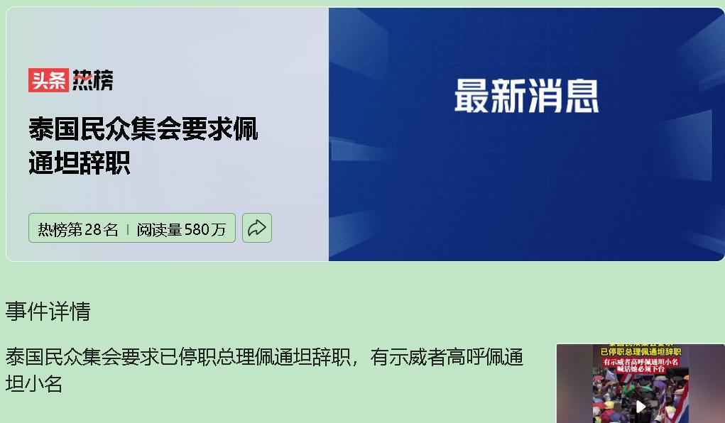 佩通坦的困局,归根到底是泰国军方、外交和家族政治三股力量在较劲。今天是生死关头,宪法法院要裁定她是否违宪。她之前那些“喊洪森叔叔”“贬低本国将领”的话,成了致命伤。法院之前5:4的投票,已经暴露高层裂痕,这一票之差,可能决定她的政治生命。 军方对她的“软”不满,但更怕政权真空引发动荡。佩通坦紧急提拔亲军方人士当防长,还亲自去军营“灭火”,这才换来军方暂时观望。要是她下台,保守派可能会推副总理普坦或者前防长巴逸代理,防止激进派上位。 街头和票仓也在较劲。中产和保皇派不断示威,甚至喊她小名“冰”来羞辱,但草根选民还是他信家族的铁杆支持者。要是法院罢免她,红衫军可能反扑,泰国又要陷入“黄红对决”的老套路。 再看后续走向,一周内如果她保住位置,得彻底和洪森划清界限,对柬埔寨强硬,还得牺牲家族利益安抚军方。一个月后,无论她在不在,为泰党都会加速“去他信化”,推新人选稳住执政联盟。长期来看,经济受柬泰冲突拖累,果蔬禁运、旅游下滑。要是军方和民选政府矛盾再起,“冷政变”并非不可能。 洪森那波“录音杀”,本想制衡泰国,却点燃了泰国的民族主义火焰。佩通坦在战火中被洗白,军方借势扩权,泰国政客们正在上演一场“危中偷塔”的极限操作。这场政治大戏,接下来会怎么演?佩通坦的政治命运,今天见分晓。#泰国民众集会要求佩通坦辞职#