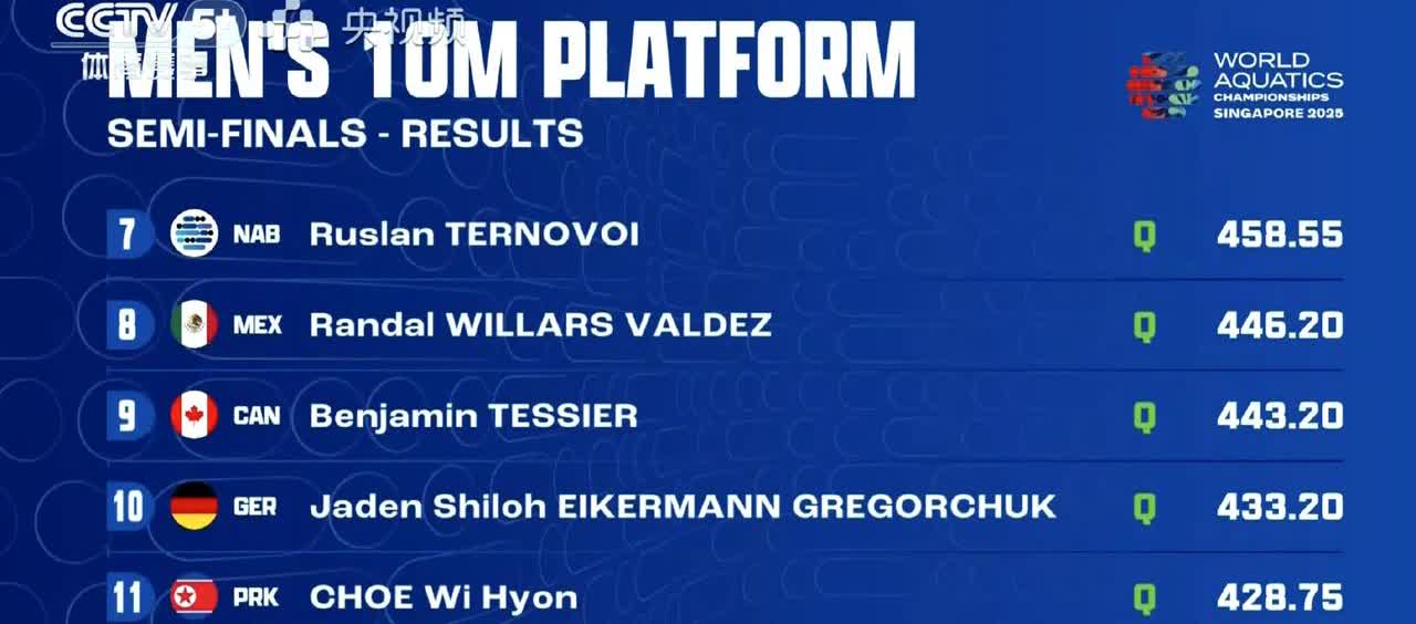 世锦赛中国跳水再丢男子10米台金牌! 北京时间8月3日,2025年新加坡游泳世