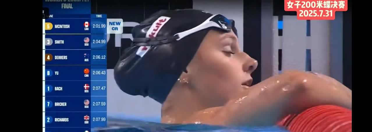 挡在于子迪未来道路上的高山——当今女子泳坛第一人:麦金托什 12岁的于子迪结束了人生第一次世锦赛之旅,取得一枚接力比赛的铜牌,并且在自己的三个主项:200米蝶泳、200米混合泳、400米混合泳上全部拿到第四名,但她的主项却与当今女子泳坛第一人麦金托什高度重合。 当大家对于于子迪的未来高度期待的同时,不要忘了麦金托什也只有19岁,虽然两人相差7岁,但麦金托什的成绩都是世界纪录级别,并且还在提升。于子迪想在20岁前赢下大赛冠军,翻越的高山犹如女子游泳的8848顶峰。 200米蝶泳差距:4秒44 200米混合泳差距:2秒52 400米混合泳差距:7秒98 ———于子迪的差距巨大,给她6年的时间兑现天赋并攀登世界顶峰,令人期待。