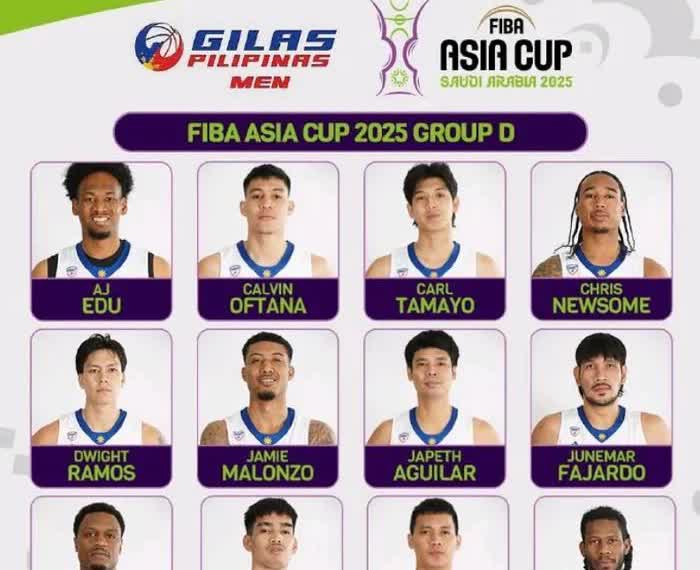 男篮沙特亚洲杯在即, 菲律宾男篮公布了12人名单, 没有那个克拉克森, 2