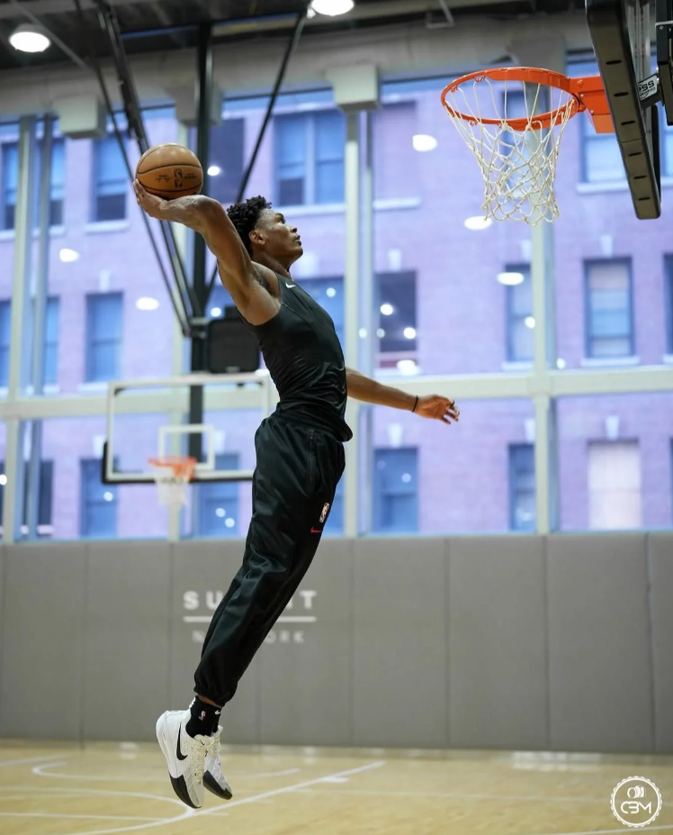 RocketsCulture更新X,晒出一组火箭球员阿门-汤普森的训练照与球迷分