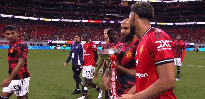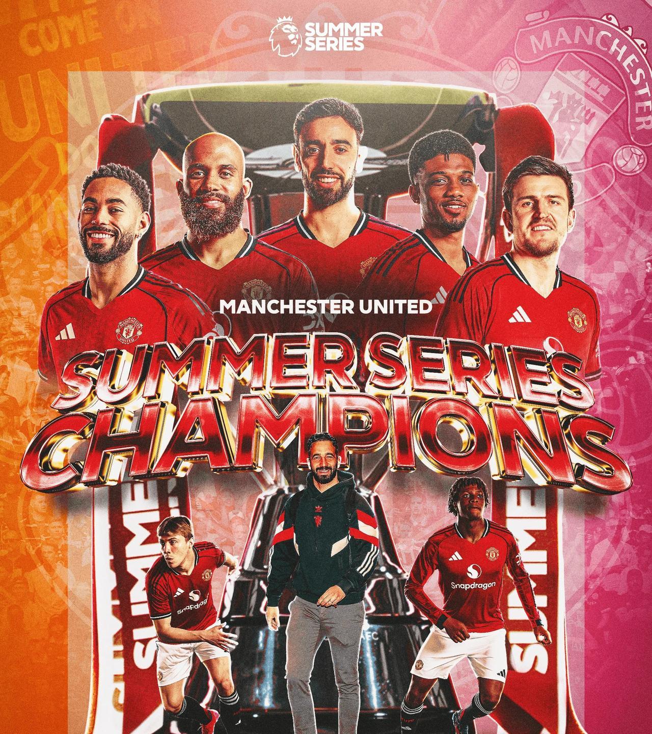 英超对曼联真够偏爱的,3场比赛还发个奖杯 上赛季四大皆空的曼联,拿下英超官方举办的夏季赛冠军,对他们是一个安慰吧。 曼联2-1西汉姆联; 曼联4-1伯恩茅斯; 曼联2-2埃弗顿; 上赛季英超的第9/13/14/15名参加的比赛,最后第15名拿到最佳战绩,有什么可炫耀的呢?这种不入流的夏季赛比赛,含金量并不高,就是普通的热身赛而已。 赛后姆贝莫抱着奖杯的表情,也让人觉得滑稽,既没有兴奋,也没有如释重负,就是稀松平常的感觉。 不过,奖杯再怎么无足轻重,排面上还是做到位了,英超官方发布了海报,祝贺曼联夺得这项热身赛的冠军。海报中库尼亚、姆贝莫、B费、阿玛德和马奎尔五名球员占据C位,就像他们取得了什么重要成就一样。 冠军利物浦都没资格参加,哪怕big6也没露脸,英超官方对曼联真的是偏爱啊。 #曼联# #英超# #英超 曼联队#