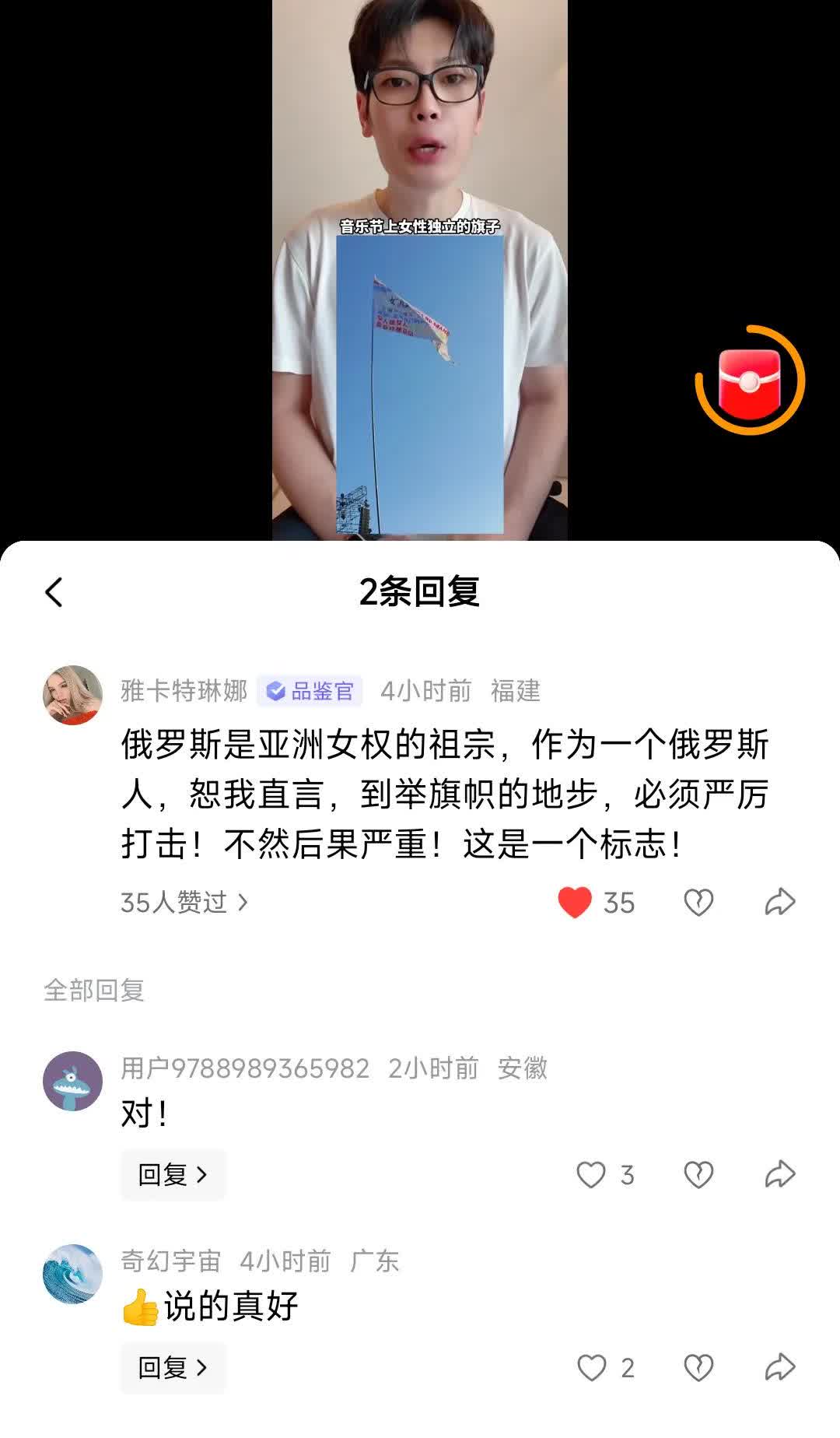 音乐节上独立女性让自己的男朋友举旗!底下的评论里最醒目的是一个俄罗斯在华的女留学