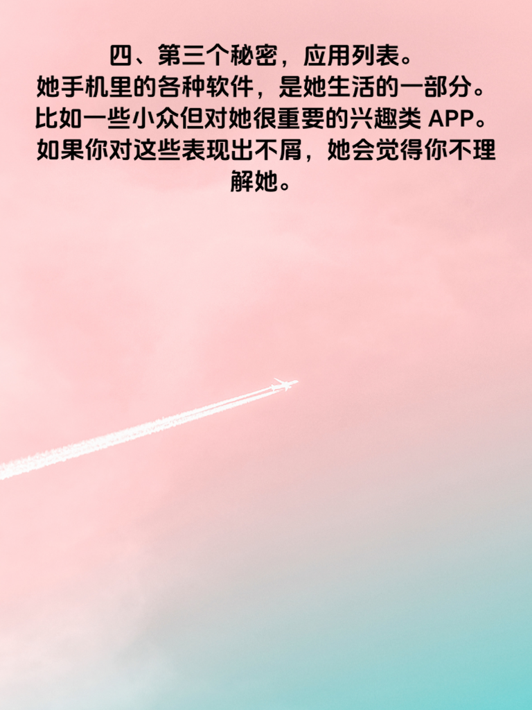 一、女生的手机,就像一个装满秘密的百宝箱,藏着许多不为人知的小心思。其中有三大秘密,若是不小心触碰,很可能会让你们之间的关系逐渐疏远。 二、第一个秘密,手机相册。这里面或许有她珍视的回忆,可能是和闺蜜的欢乐时光,也可能是曾经的青涩爱恋。当你未经允许翻看,她会觉得自己的隐私被侵犯,安全感瞬间降低。 三、第二个秘密,聊天记录。她和朋友、家人的交流内容,也许包含着对生活的吐槽、对未来的规划。随意窥探,会让她觉得你在过度干涉她的生活,从而心生反感。 四、第三个秘密,应用列表。她手机里的各种软件,是她生活的一部分。比如一些小众但对她很重要的兴趣类 APP。如果你对这些表现出不屑,她会觉得你不理解她。 五、所以,男生们要明白,尊重女生手机里的秘密,就是尊重她这个人。给她足够的空间,才能让感情在信任中稳步前行,避免因无端的好奇而导致关系疏远。
