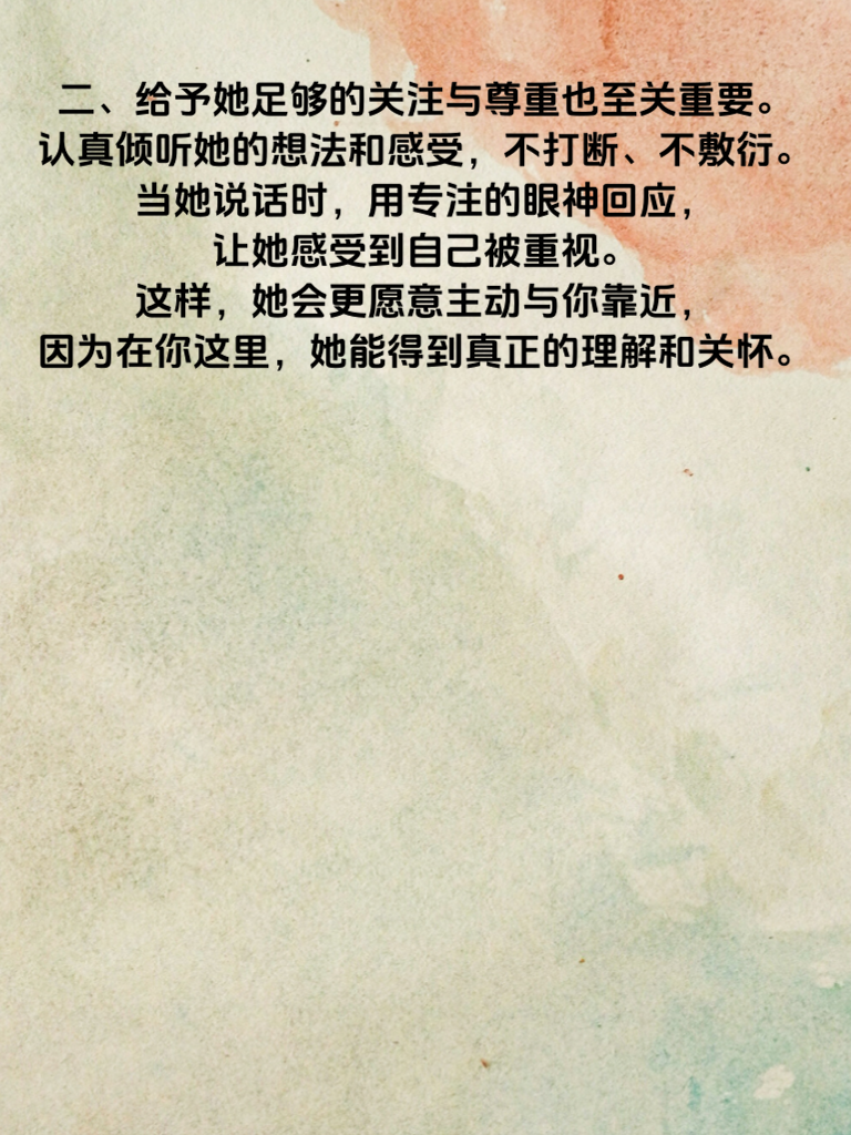 一、男人总渴望心仪的她能主动些,其实这并非难事。首先,要学会恰到好处地展示自身魅力。无需刻意吹嘘,而是在日常交流中,自然地流露出你的才华、风趣与责任心。比如,分享你工作中的小成就,或是讲个逗趣的生活段子,让她看到你独特的闪光点,从而被你深深吸引。 二、给予她足够的关注与尊重也至关重要。认真倾听她的想法和感受,不打断、不敷衍。当她说话时,用专注的眼神回应,让她感受到自己被重视。这样,她会更愿意主动与你靠近,因为在你这里,她能得到真正的理解和关怀。 三、制造一些有趣且独特的共同经历。一起去探索一家小众的咖啡馆,或是参加一场别具一格的手工活动。这些特别的回忆会在她心中留下深刻印记,促使她主动回味与你相处的点滴,进而更积极地与你互动。 四、偶尔适当保持一点神秘感也很有效。不要把自己的一切都立刻展现出来,适时地隐藏一些小秘密,激发她的好奇心。当她对你充满好奇,就会更主动地去了解你,想要揭开你身上的神秘面纱。