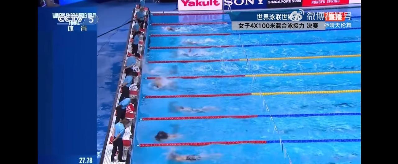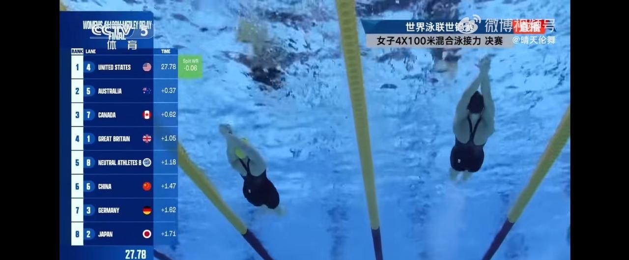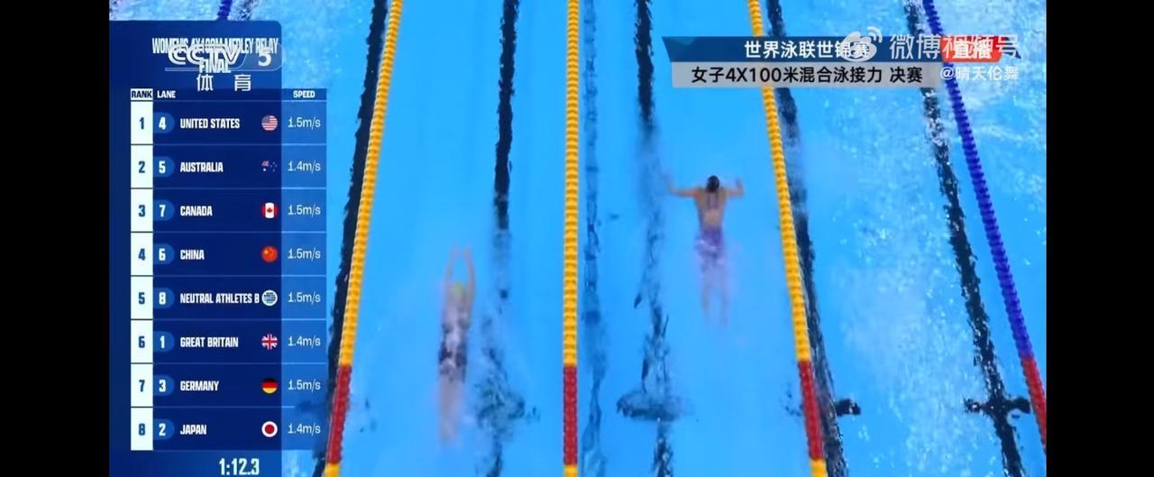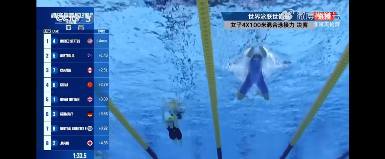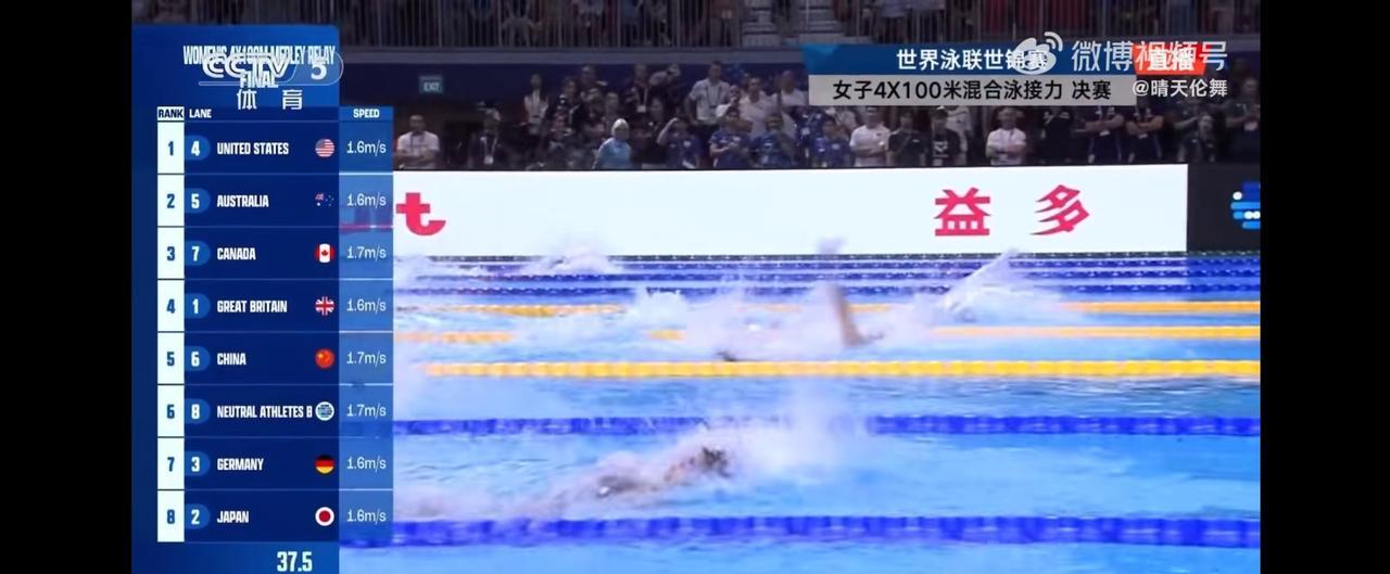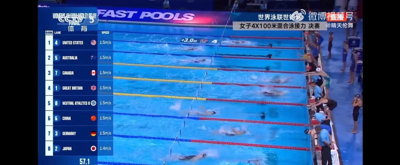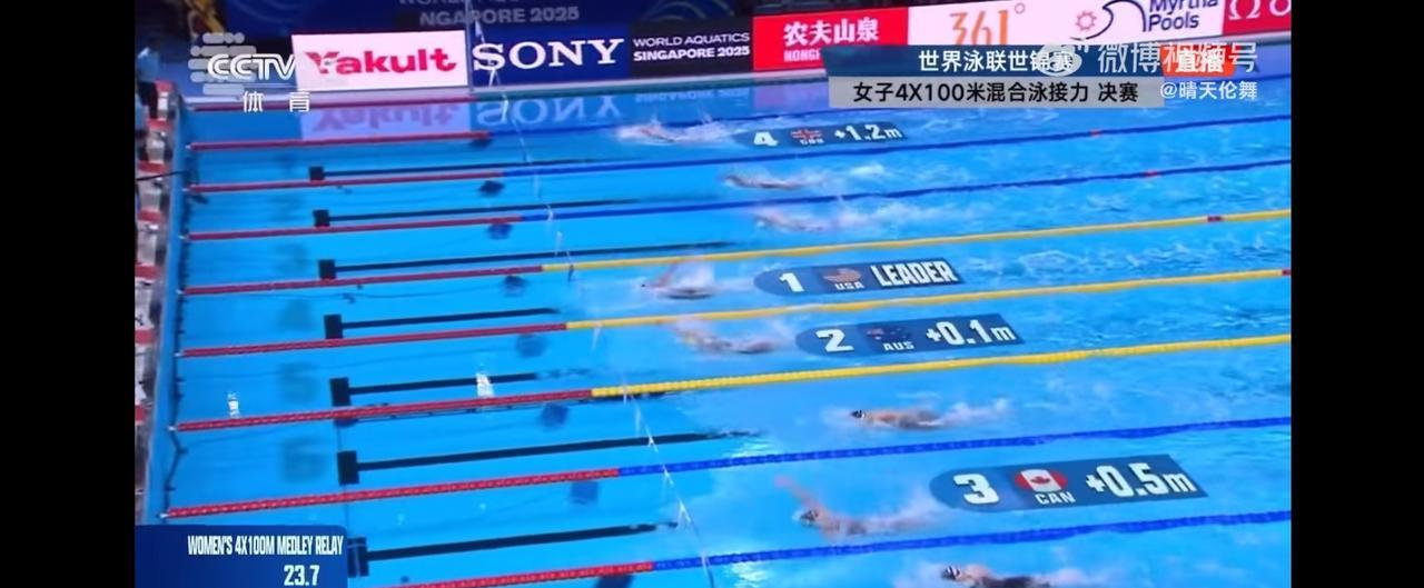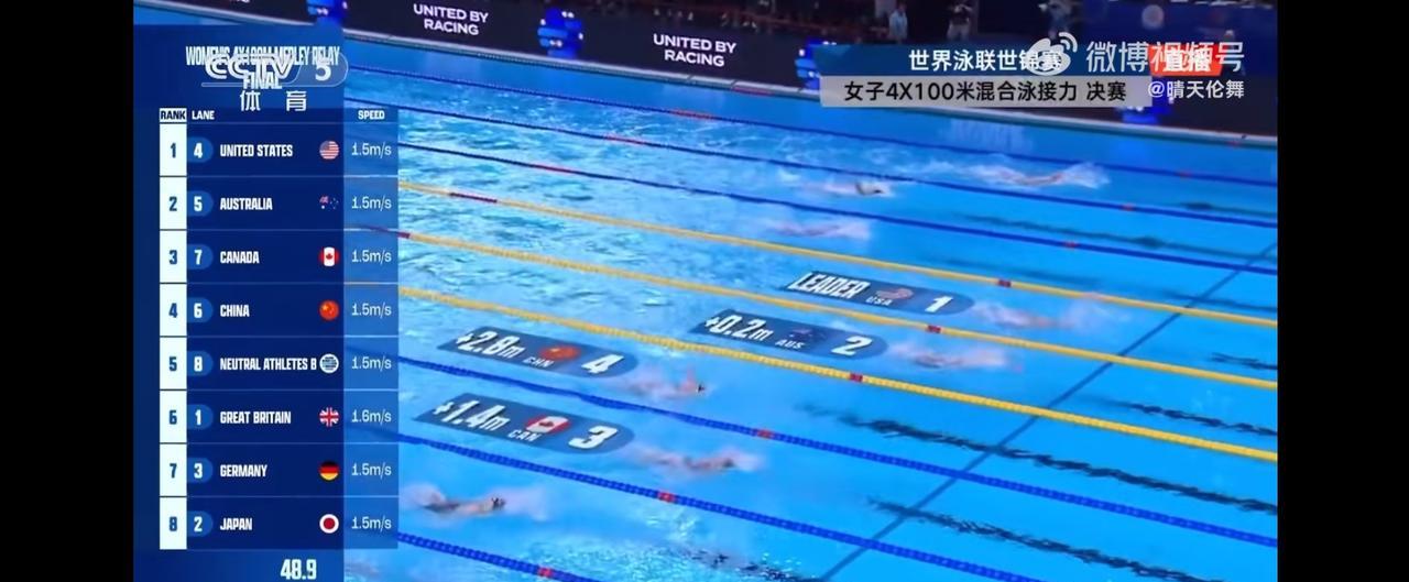 女子4x100米混合泳接力决赛的泳池里,速度与耐力的较量划出激动人心的浪花。美国