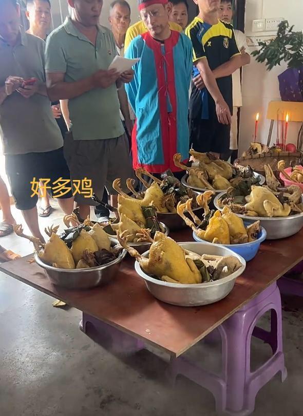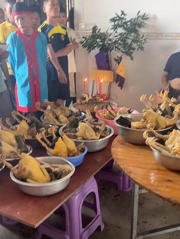 海南一个村子举行祭奠仪式,100多个光棍,宰了好多鸡,宰猪放炮,杀鸡祭拜,拉着风