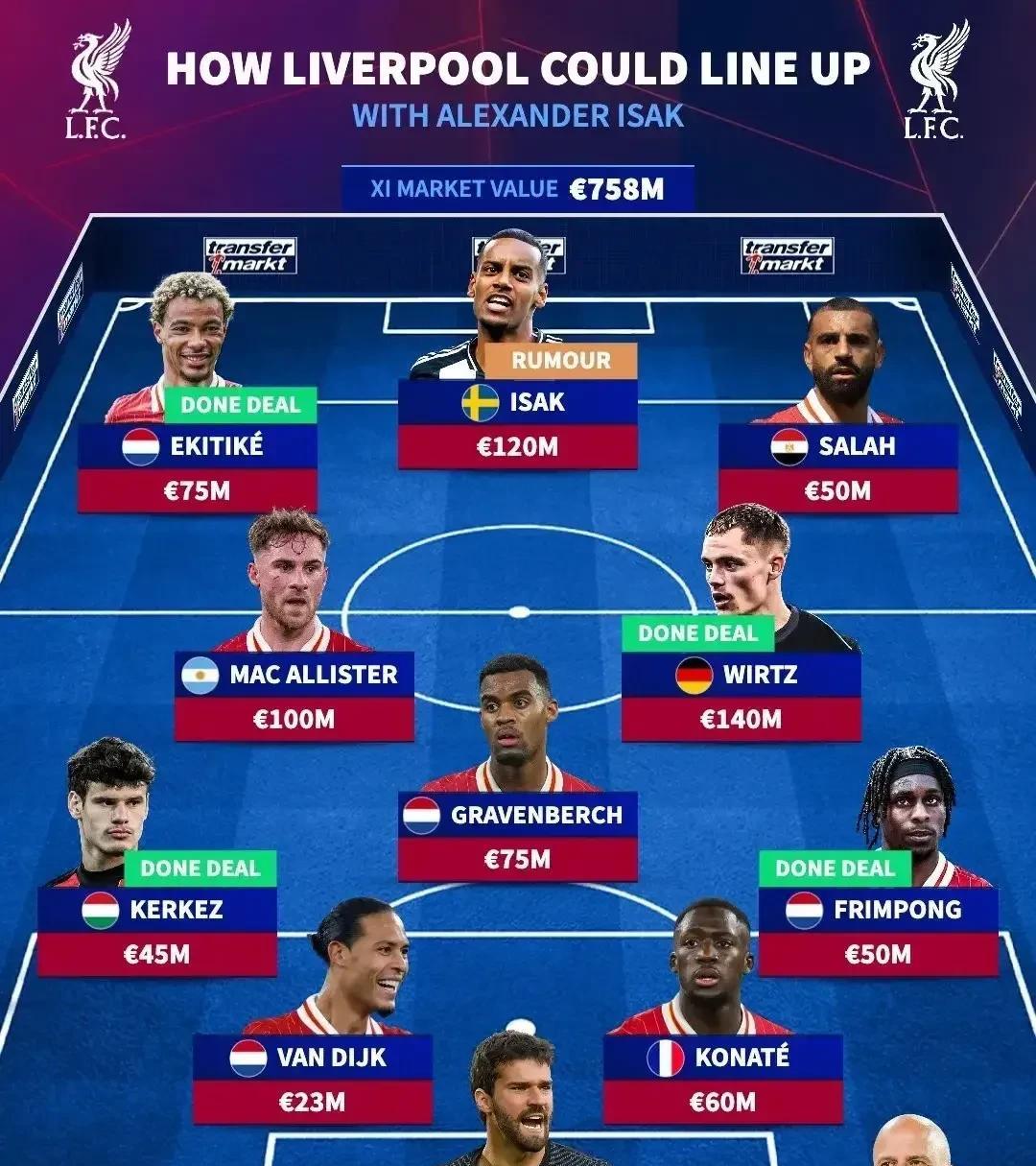 利物浦今年这么哐哐砸钱买人考虑过渣叔的感受么?渣叔在红军8年才花几个钱?光头来第二年就花了三个亿了,最后可能奔着五个亿去了。 没想到利物浦今年也是好起来了,居然可以为所欲为的买人了。看看伊萨克到底会不会下树。 真是心疼渣叔,你说要是这些钱你早点给渣叔用多好?说不定还能多拿几个冠军。说不定渣叔就不会走了。 现在压力都来到了斯洛特的身上,这阵容要是拿不到双冠王球迷和老板可不答应。