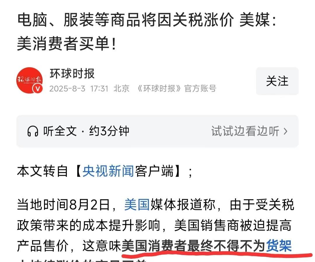 美媒曝出一个消息,美国掀起的关税漩涡,把自己卷进去了,中国却越来越好。 美国《纽约时报》网站在最新报道中提到,美国企业开始将更多与关税相关的成本转嫁给消费者。同时,有多家美企高管表示,越来越多的美国消费者正在面临消费级。 这个情况可不太妙,要知道7月份美国消费者信心好不容易连续第二个月上升,但整体乐观程度仍处于历史低位,可能又是一次挑战。 反观中国虽遭受关税漩涡波及,但发展道路却没有发生偏移。上半年GDP同比增长5.3%,进入下半年国家继续大力提振消费,很多行业也在主动破除内卷式竞争,可以说积极信号不断。 就拿大家都很有感触的外卖市场来说,市场结构发生了本质上的变化,不但消费者消费热情高涨,全国即时配送市场订单量持续攀升,而且在多平台良性竞争的趋势下,从品牌连锁到地方餐饮,再到中小商家,都迎来了营收和利润双增长。 比如中式快餐代表性品牌和合谷,自7月以来,其外卖订单量环比增长约140%,净GMV增长近80%,销售总额和利润总额均实现稳步提升。和合谷外卖业务负责人孙越解释,淘宝闪购等平台通过消费券和流量扶持带来大量新客,我们通过稳定的出品和高效的运营承接住了这波流量,复购率也在稳步提升。 还有北京知名餐饮品牌南门涮肉在与平台的联合营销活动中,门店订单周同比增幅达147.8%。在南门涮肉运营部主任曹永泉看来,淘宝闪购等平台的主动下场,为传统品牌带来了可持续的市场增量。 不难看出,现在国内的情况是,国家在发力,平台、企业也在创新模式,从而撬动消费增量,这也是我们的发展能持续向好的关键所在。