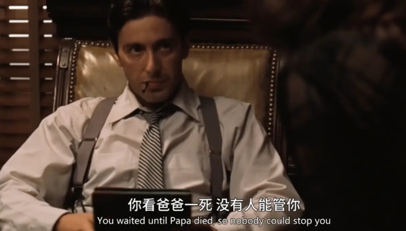 《教父》讲得其实也是一个家族规则和家庭规则的故事,从本质上来讲,家族利益的完整性和亲情纽带的完整性,根本就是一对不可调和的矛盾。