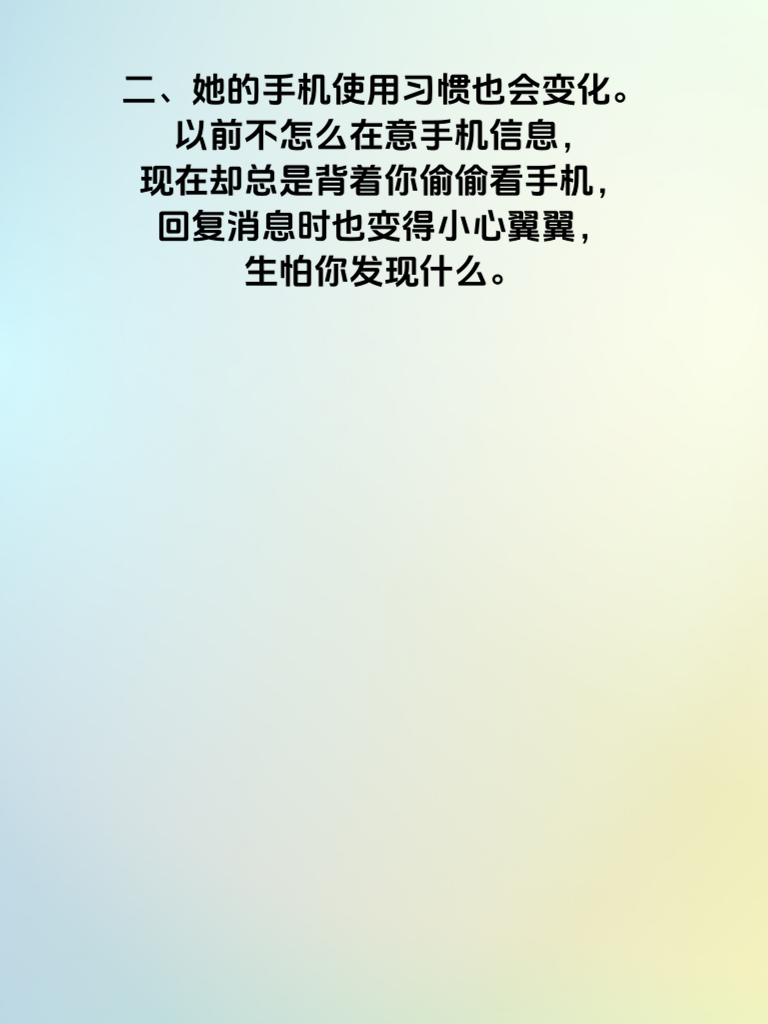 一、女性出轨前,往往会在一些细节上悄然改变。比如,她开始格外注重自己的外表,从前素面朝天,现在却每天精心化妆,挑选漂亮衣服,仿佛要去赴一场重要约会。 二、她的手机使用习惯也会变化。以前不怎么在意手机信息,现在却总是背着你偷偷看手机,回复消息时也变得小心翼翼,生怕你发现什么。 三、在家的时间明显减少,总有各种借口外出。以前喜欢和你一起宅在家里,现在却频繁参加聚会、活动,对家的眷恋似乎淡了许多。 四、对你的态度也会有转变。不再像以前那样温柔体贴,变得容易烦躁,对你的关心和询问不耐烦,甚至开始挑剔你的各种行为。 五、夫妻生活上也能察觉异样。她可能会变得冷淡,找各种理由拒绝亲密接触,和从前的热情主动判若两人。当发现这些细节变化时,一定要冷静思考,好好沟通,别让感情在不知不觉中溜走。